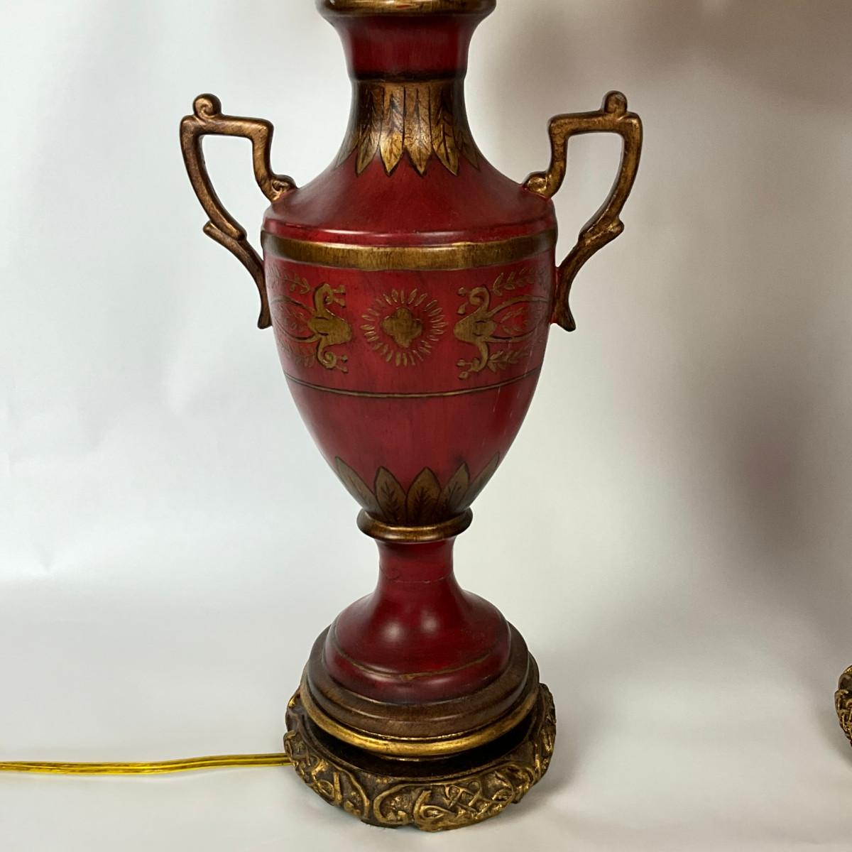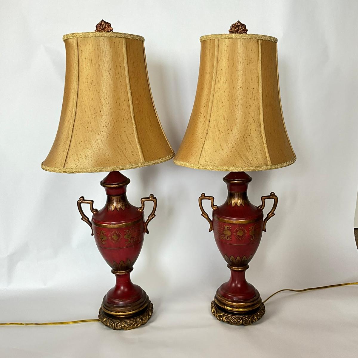 615 Pair of Red/Gold Composite Lamps AS-IS