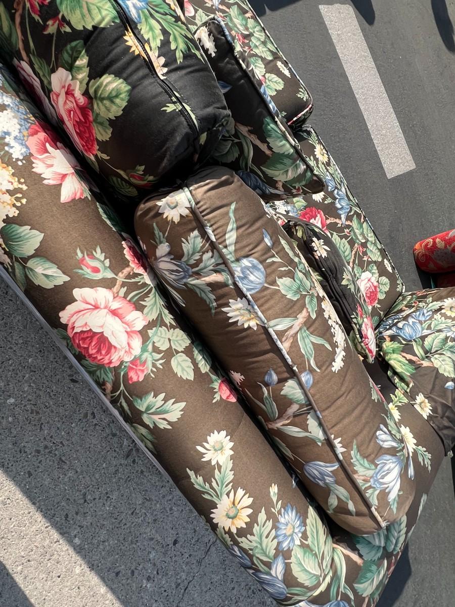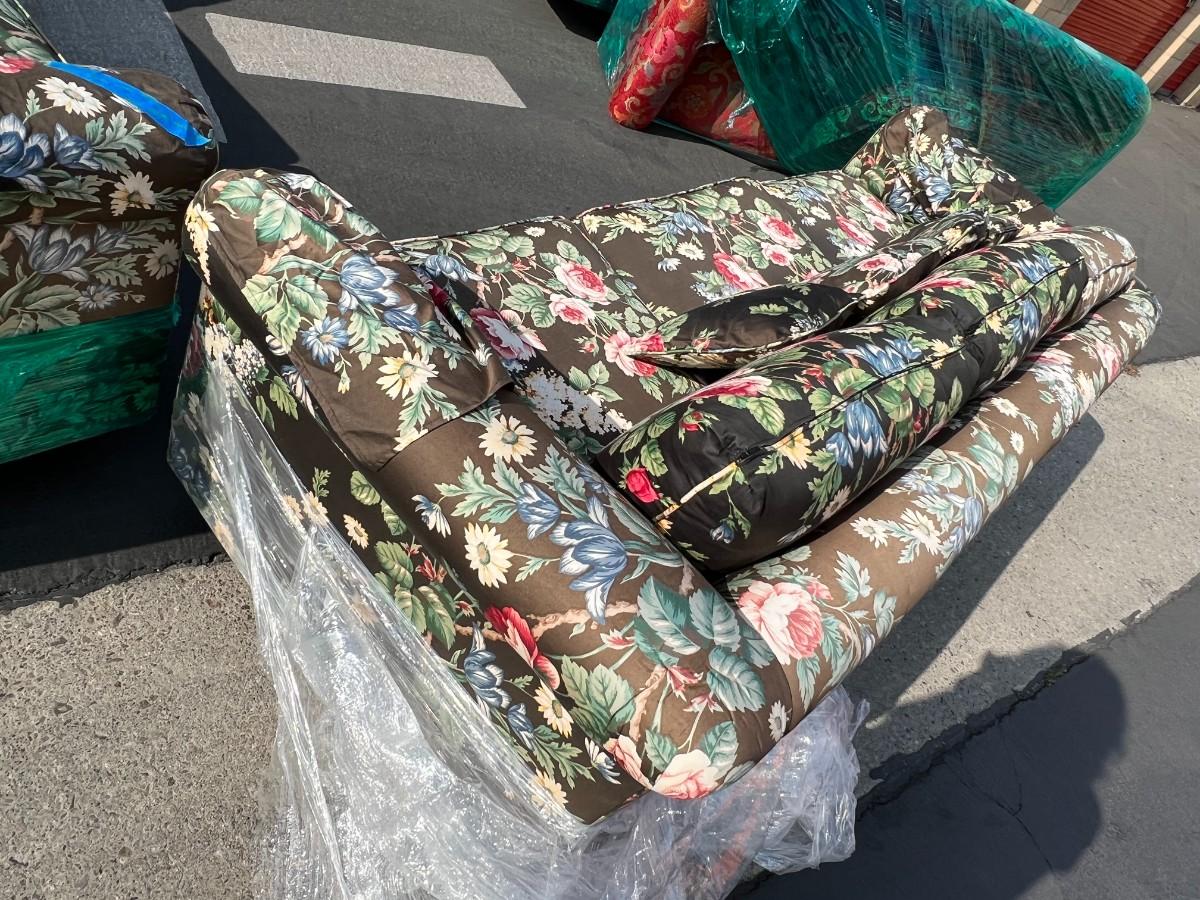 Pair of Retro Contemporary Flower Pattern Sofa Couches