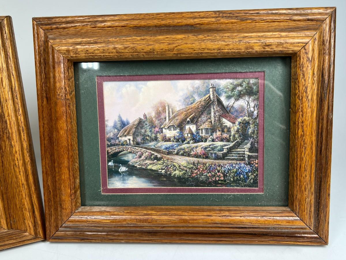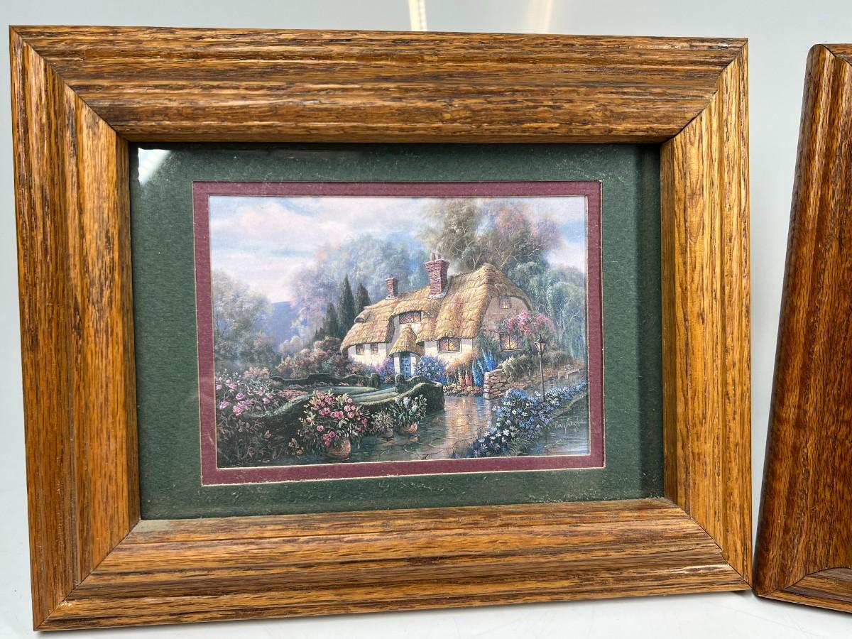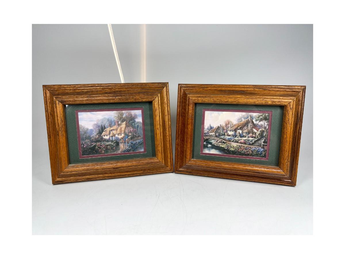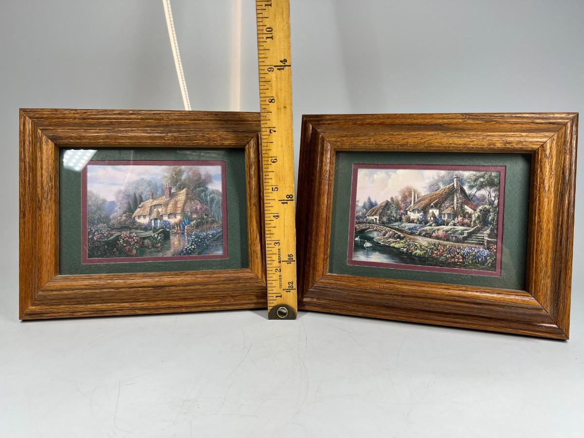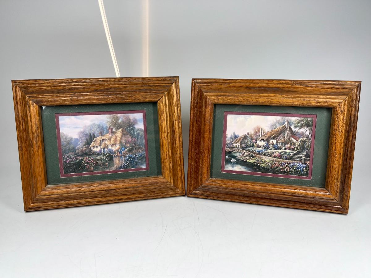 Pair of Retro Cottage Core Framed Photos of Tranquil Stone Houses