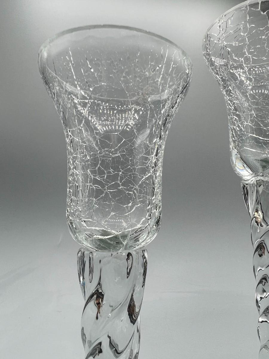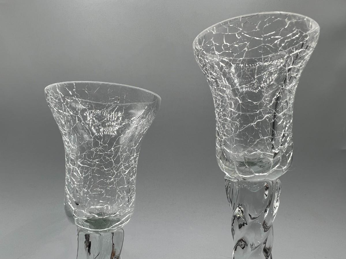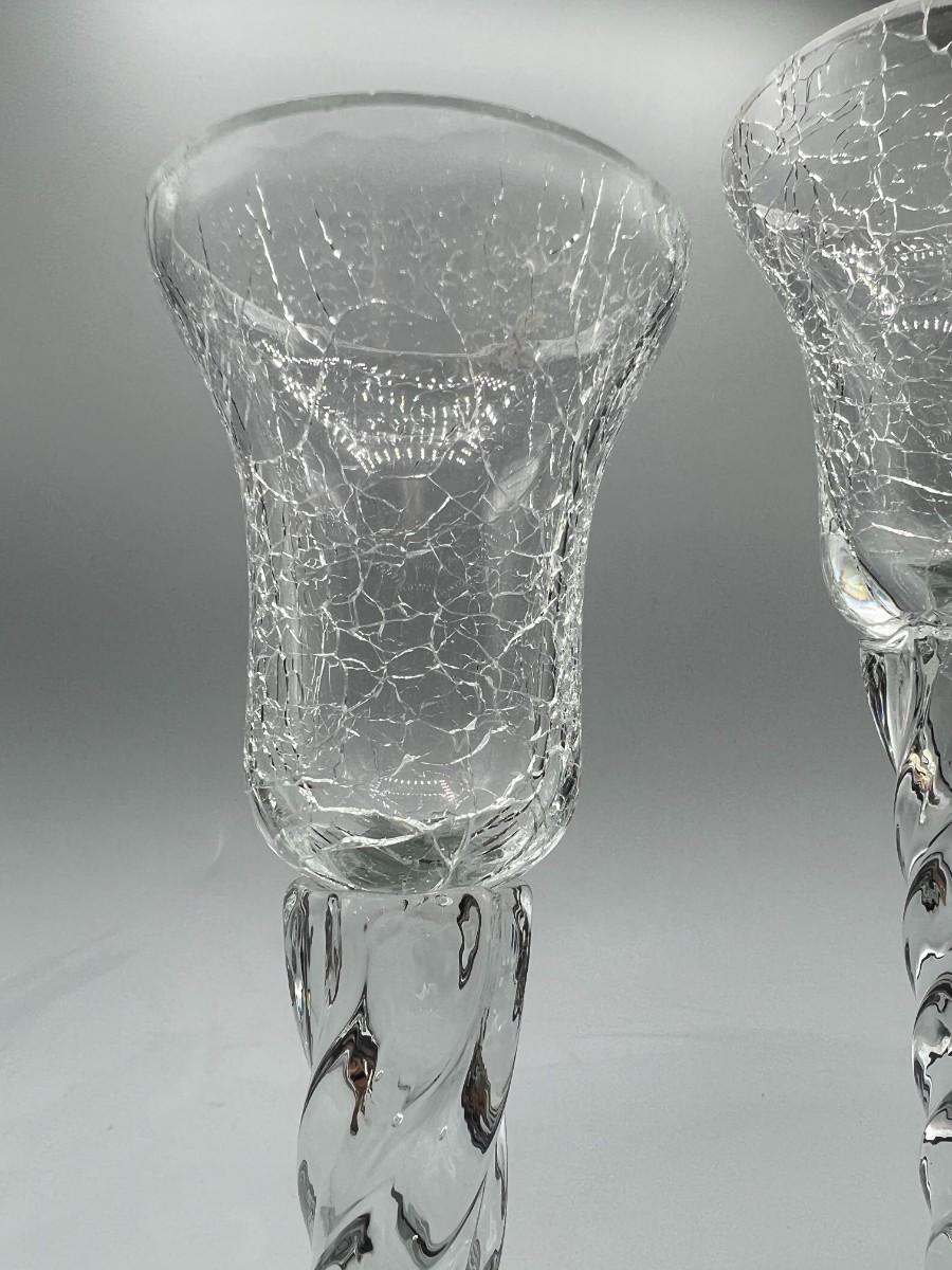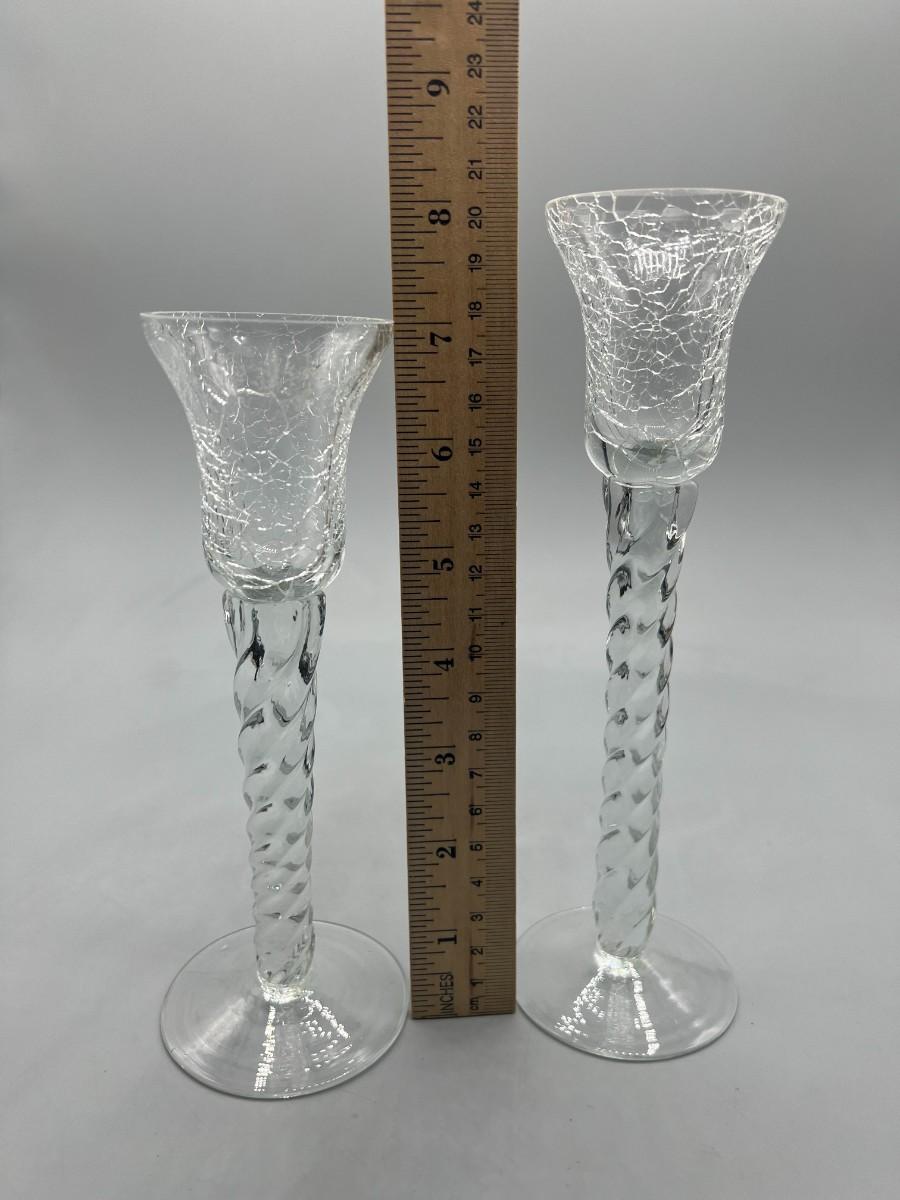 Pair of Retro Crackle Glass Twist Single Candleholders
