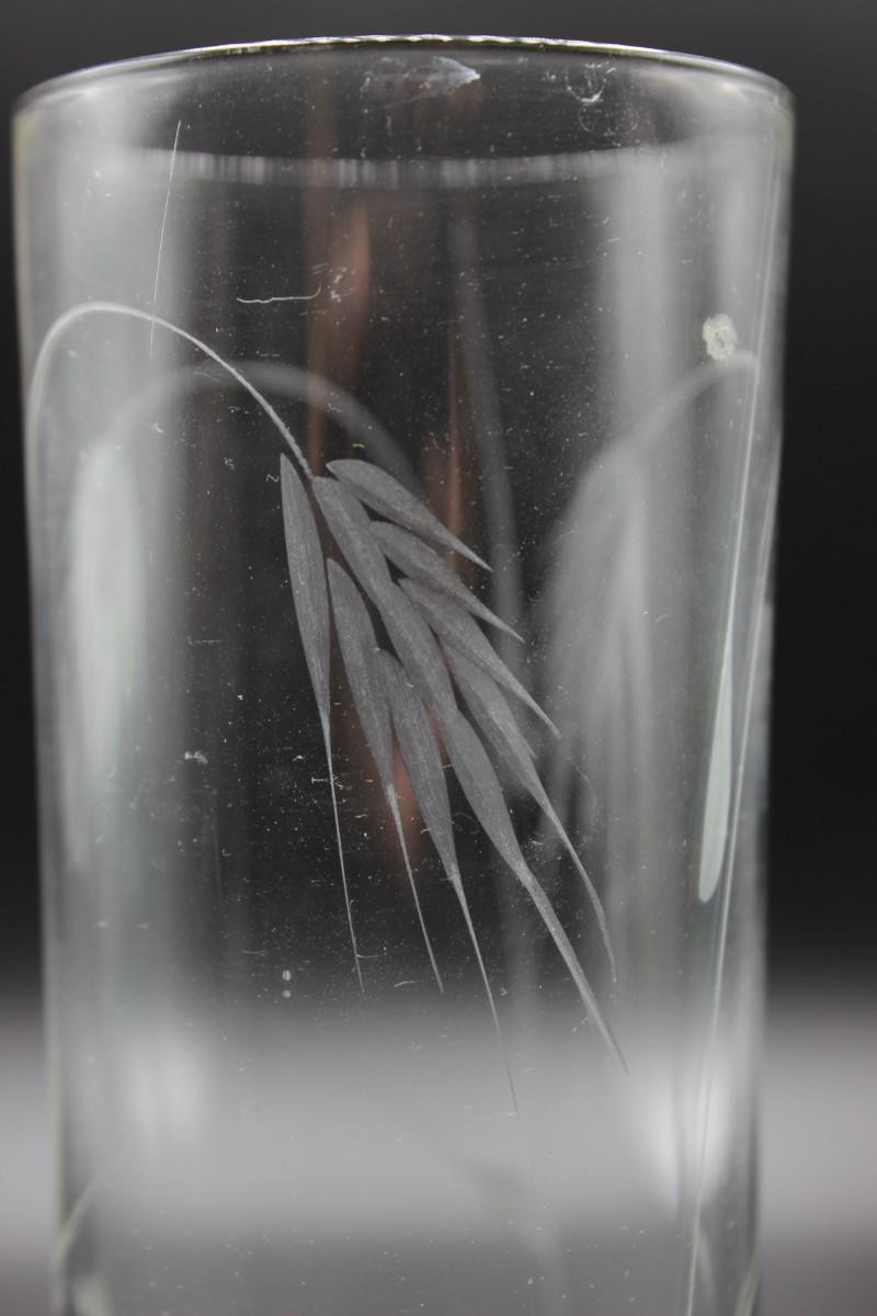 Pair of Retro Wheat Etched Design Thin Clear Drinking Iced Tea Glasses