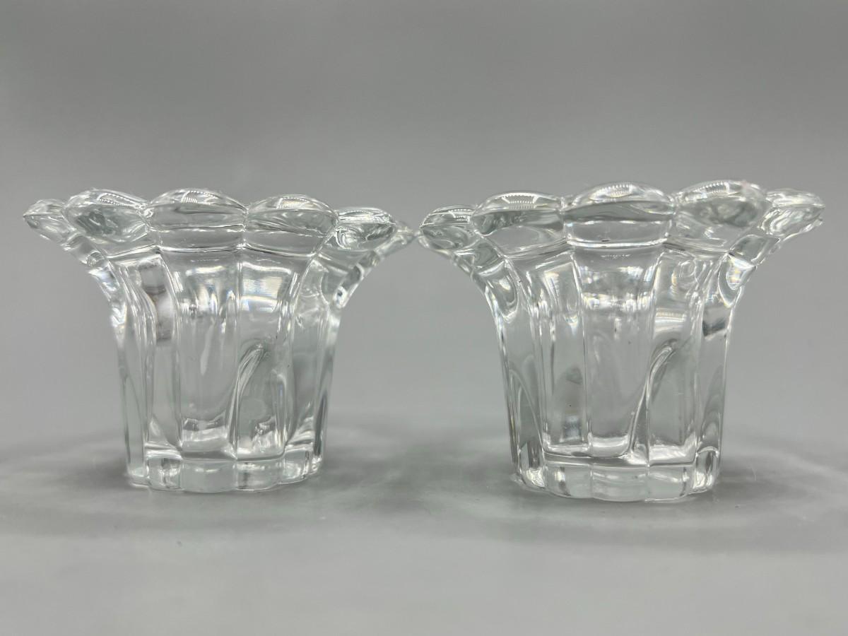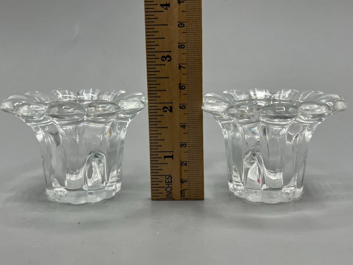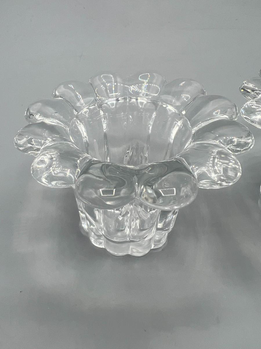 Pair of Retro Glass Art Blooming Flower Pattern Candlestick Holders