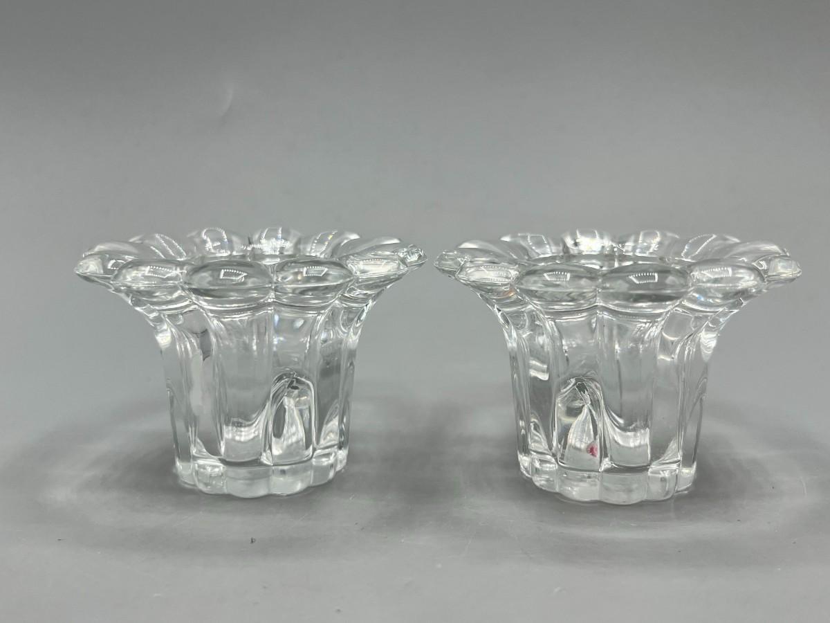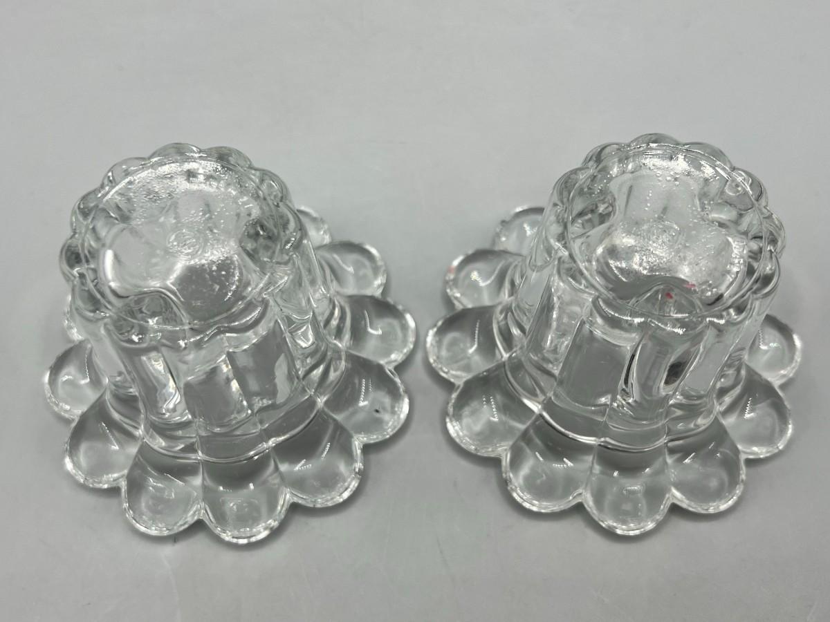 Pair of Retro Glass Art Blooming Flower Pattern Candlestick Holders