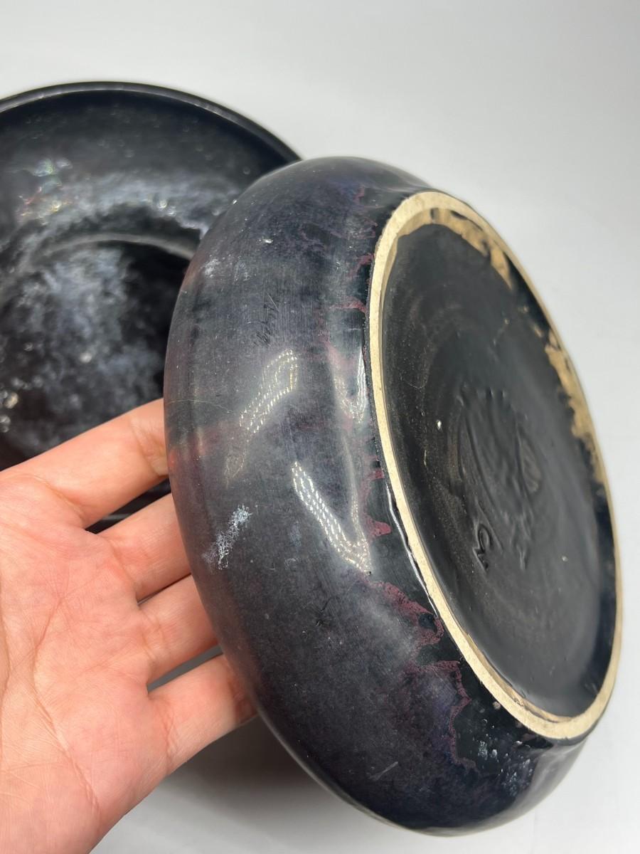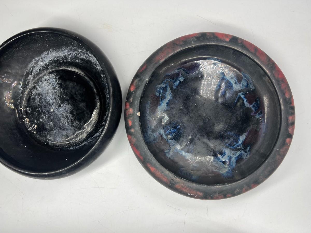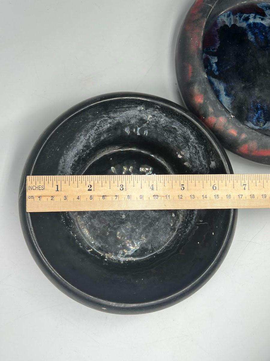 Pair of Retro Handmade Pottery Clay Dark & Multi Colored Decorative Bowls