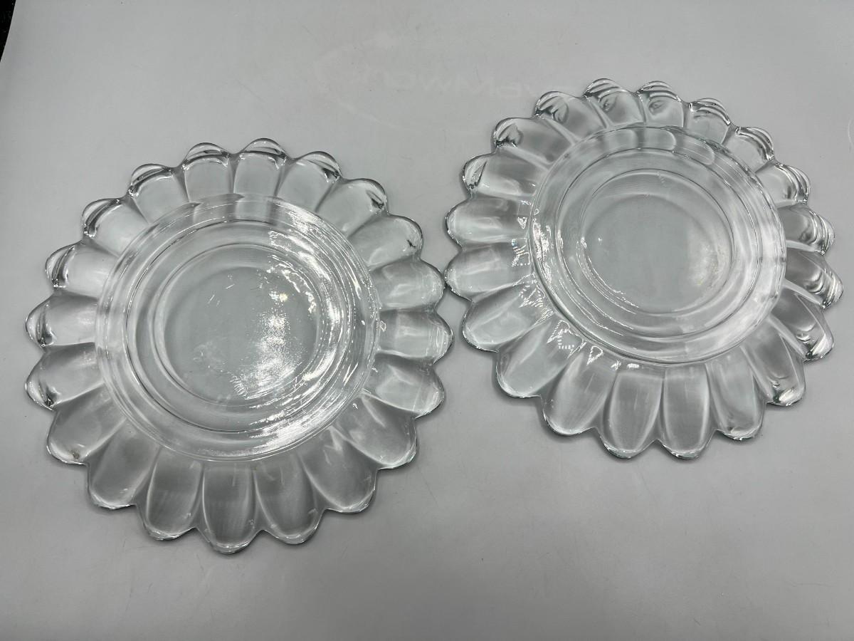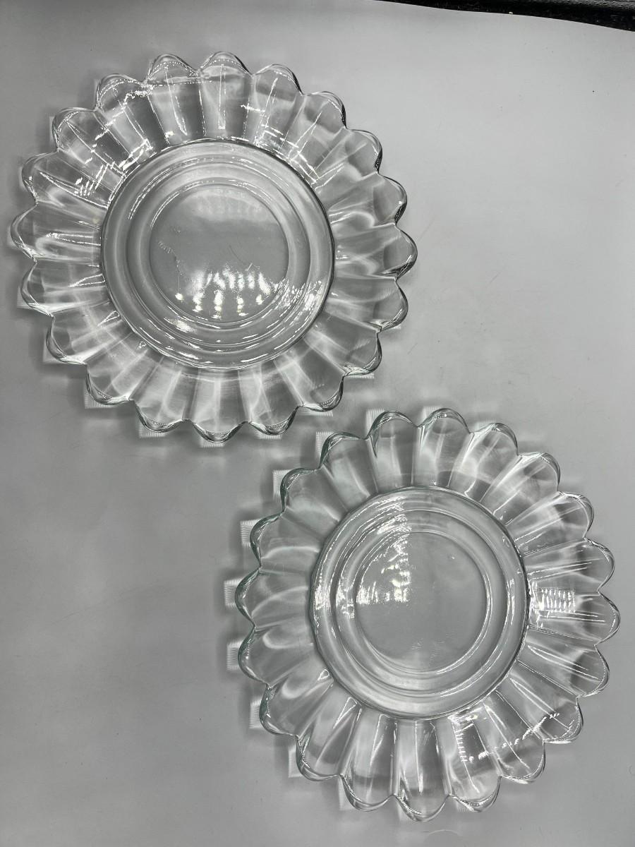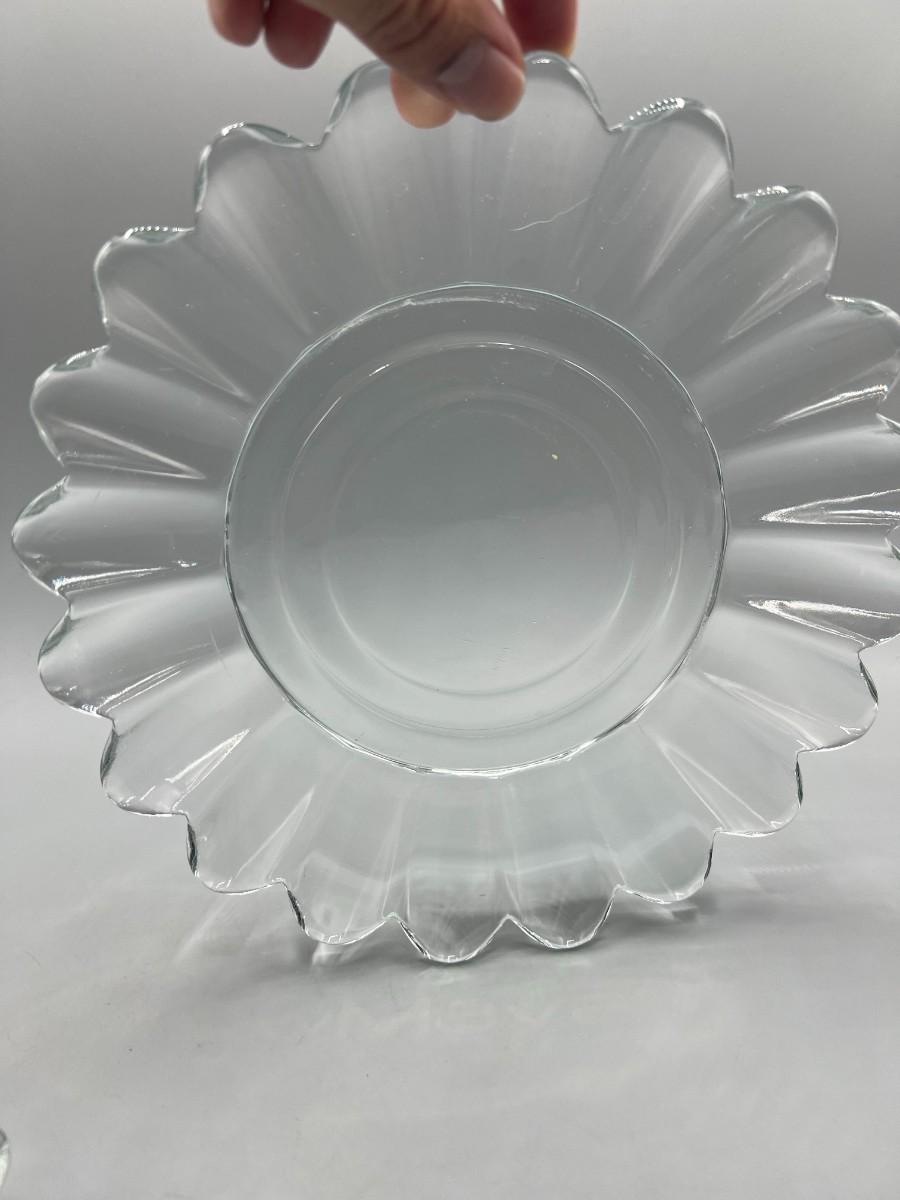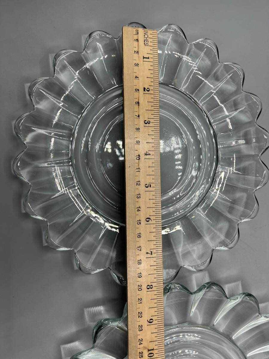 There is some light scratching to the center of the plates and is in overall good collectible or useable condition. Check pictures for more details and for sizing.