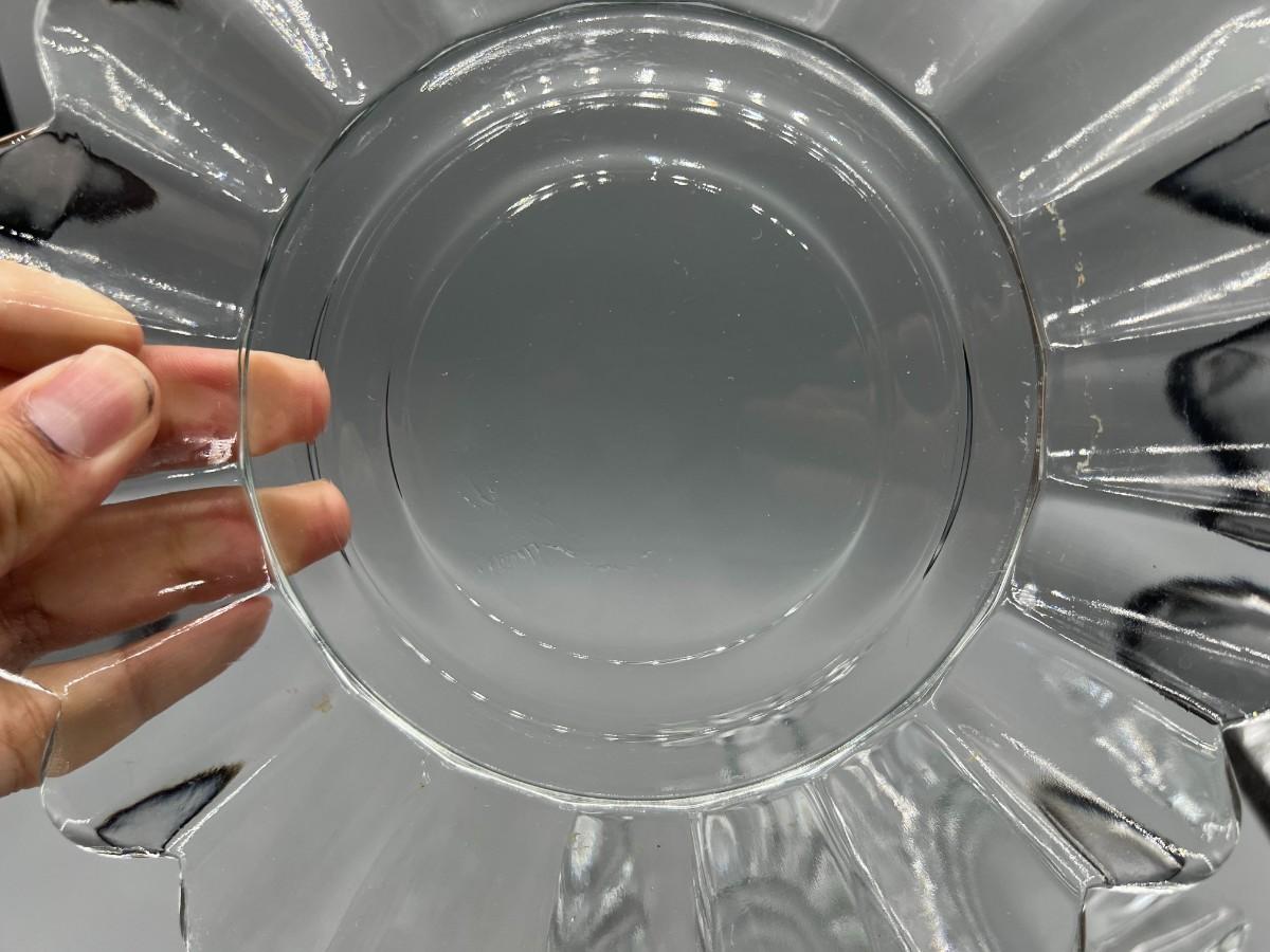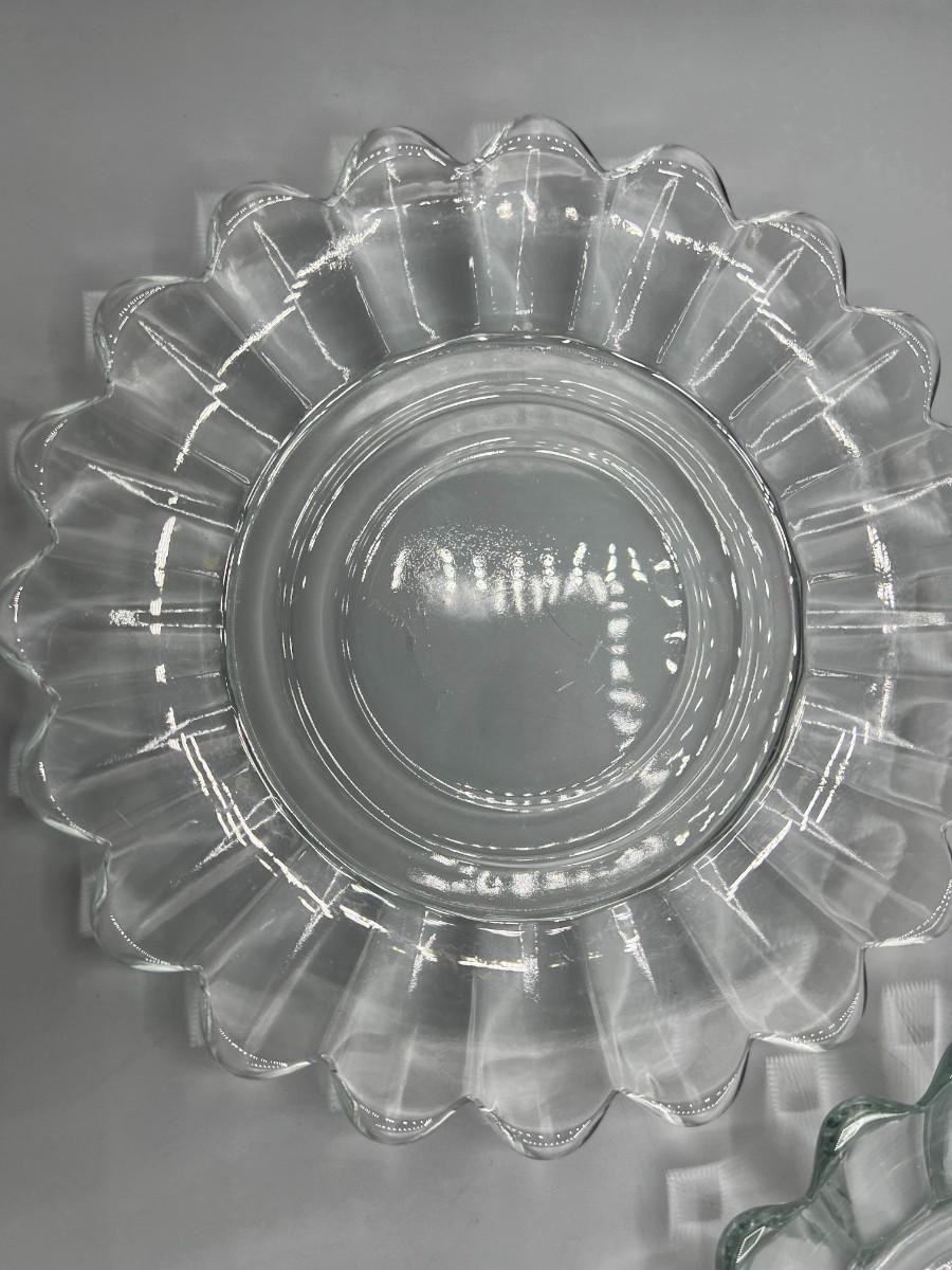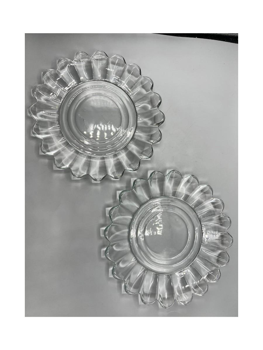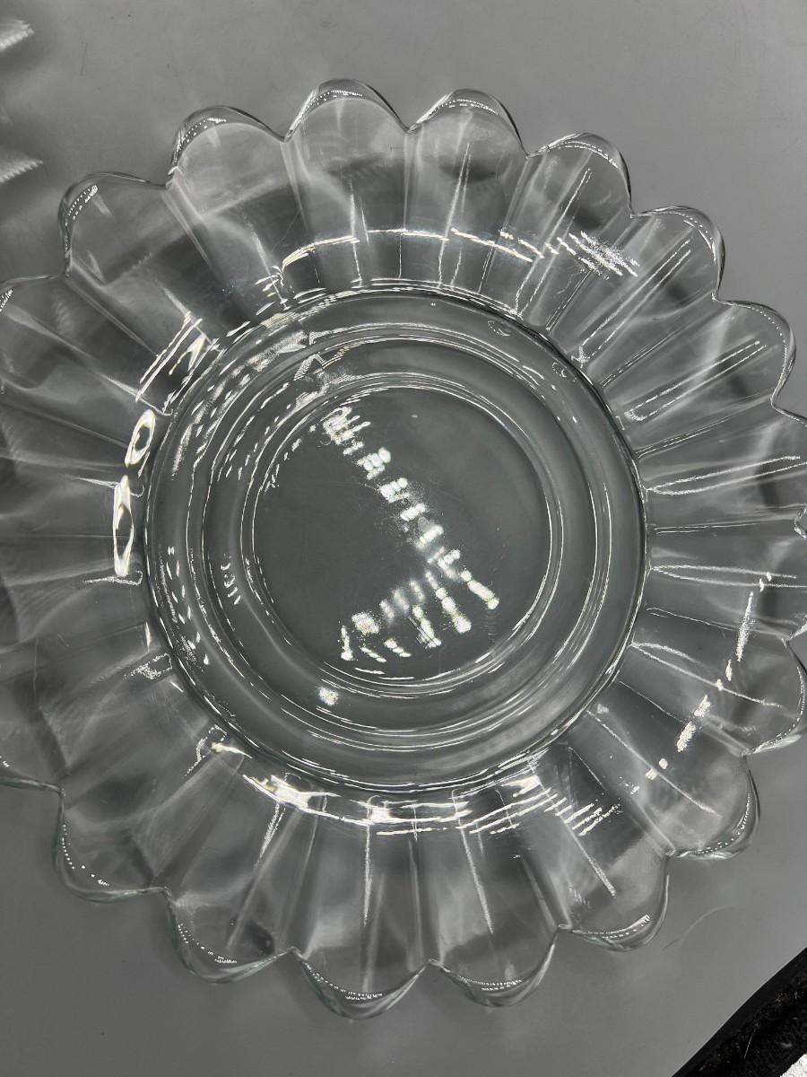 There is some light scratching to the center of the plates and is in overall good collectible or useable condition. Check pictures for more details and for sizing.