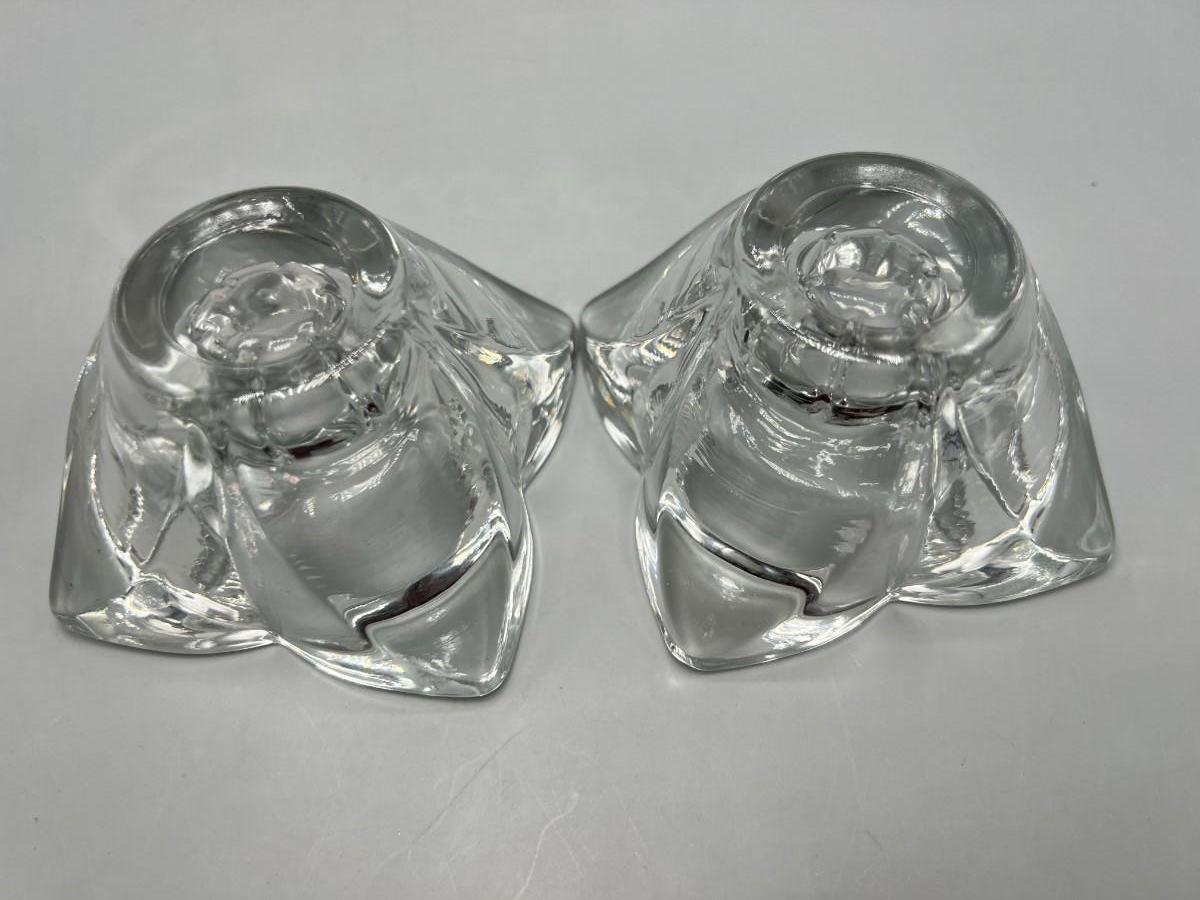 Pair of Retro Heavy Glass Single Mid Century Modern Candlestick Holders