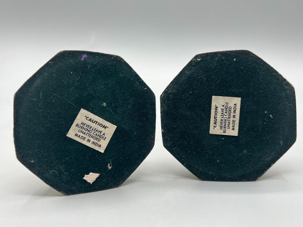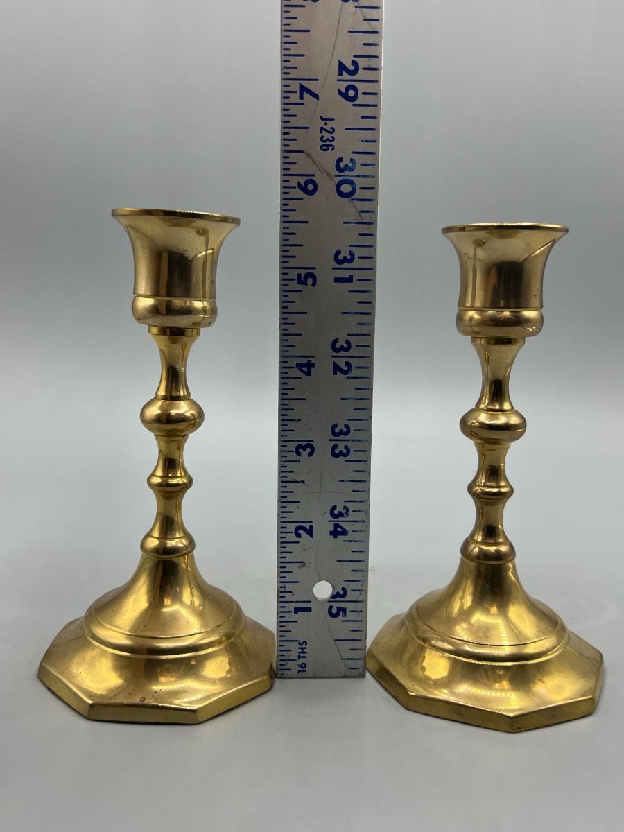 There is no significant damage to any of the candle stick holders and is in overall good collectible or displayable condition. Check pictures for more details and for sizing.