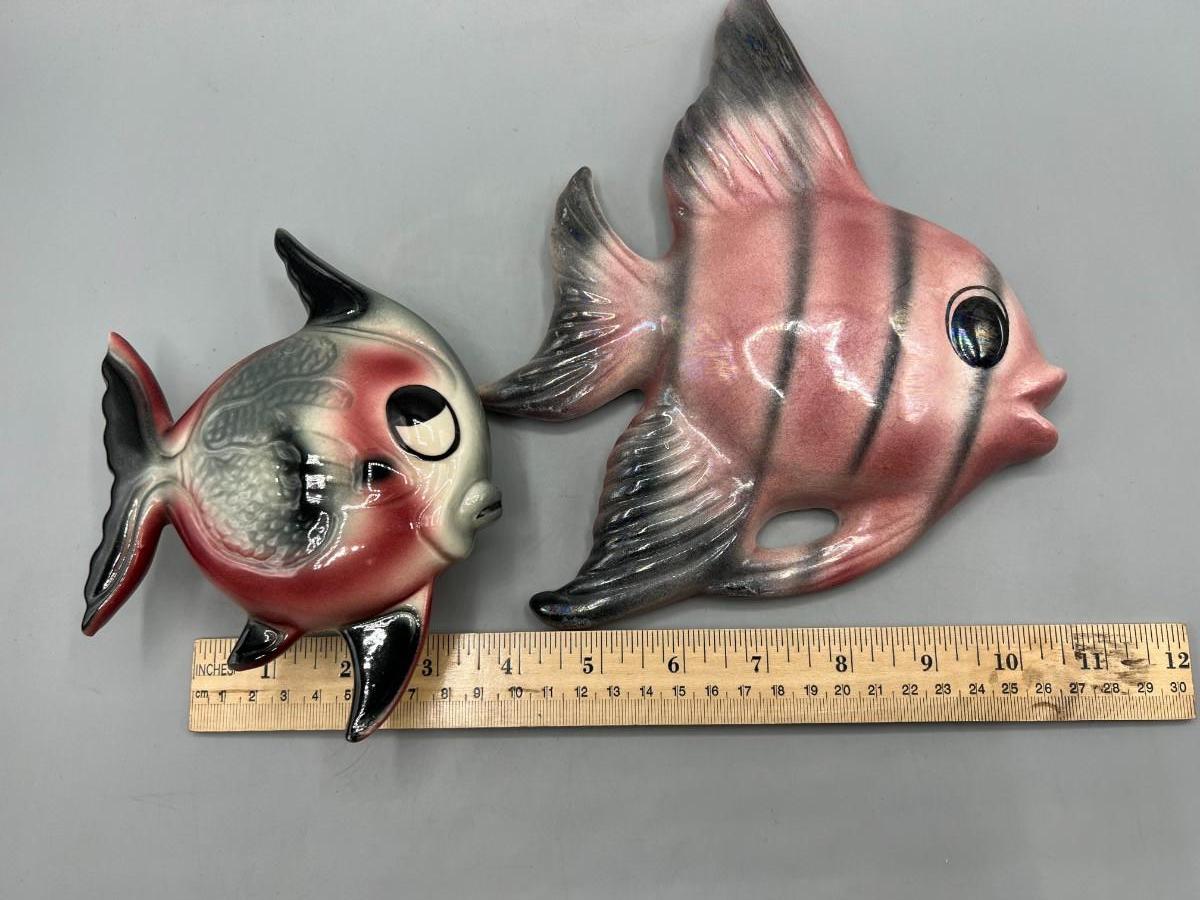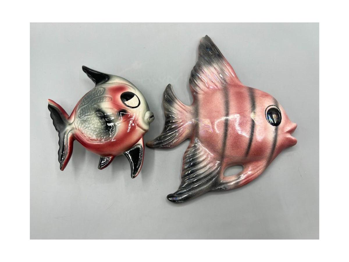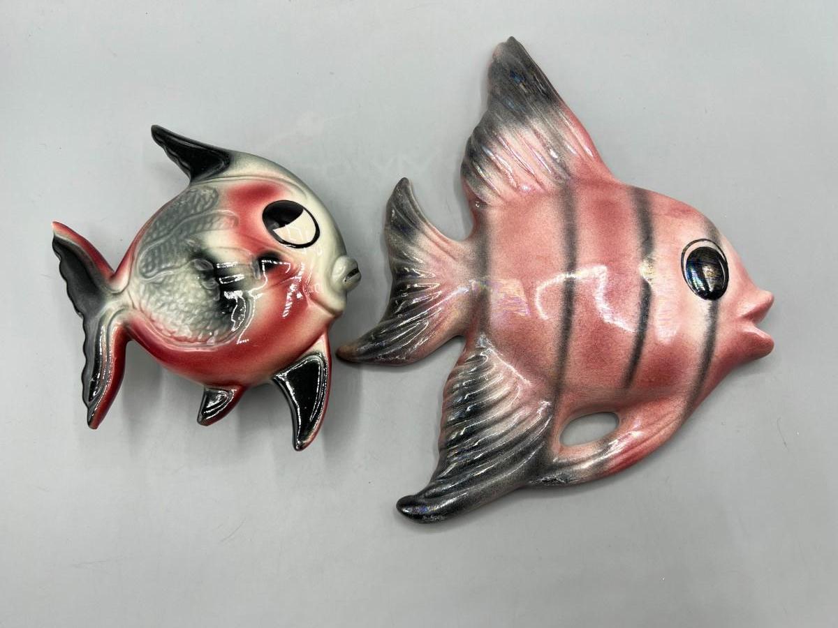 Pair of Retro Tropic Treasures Pink Red Ceramic Nautical Fish Hanging Decor