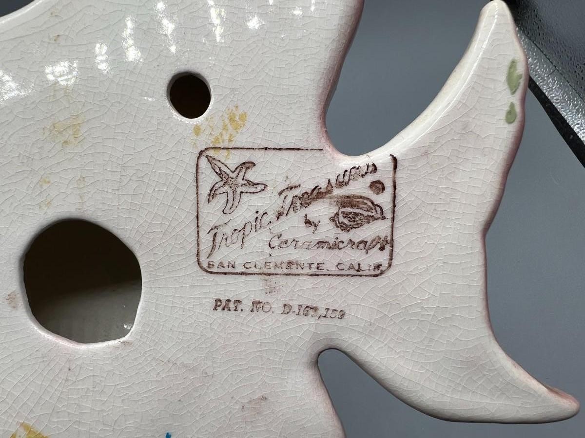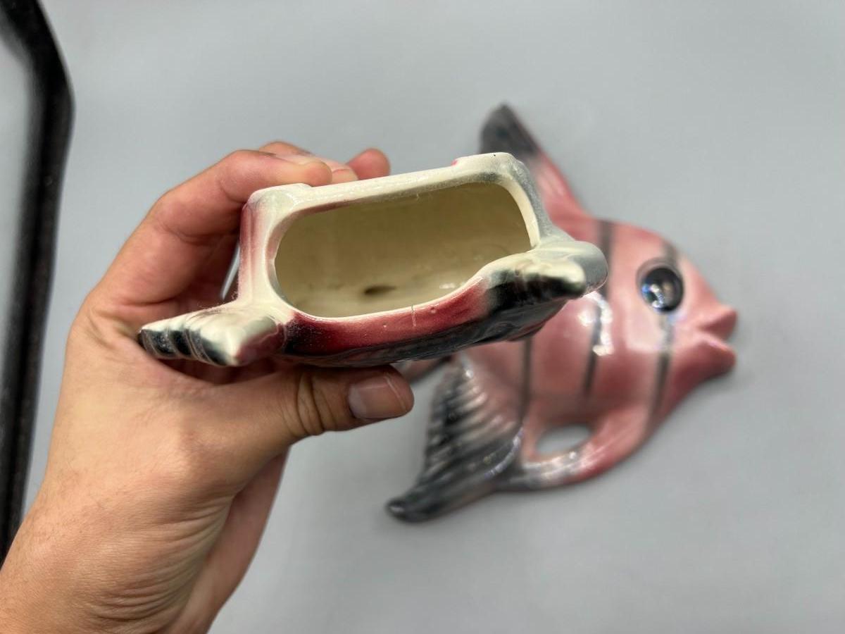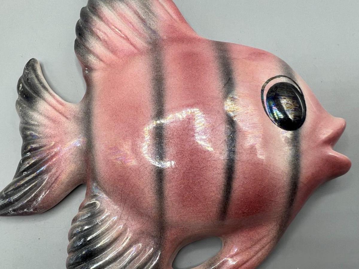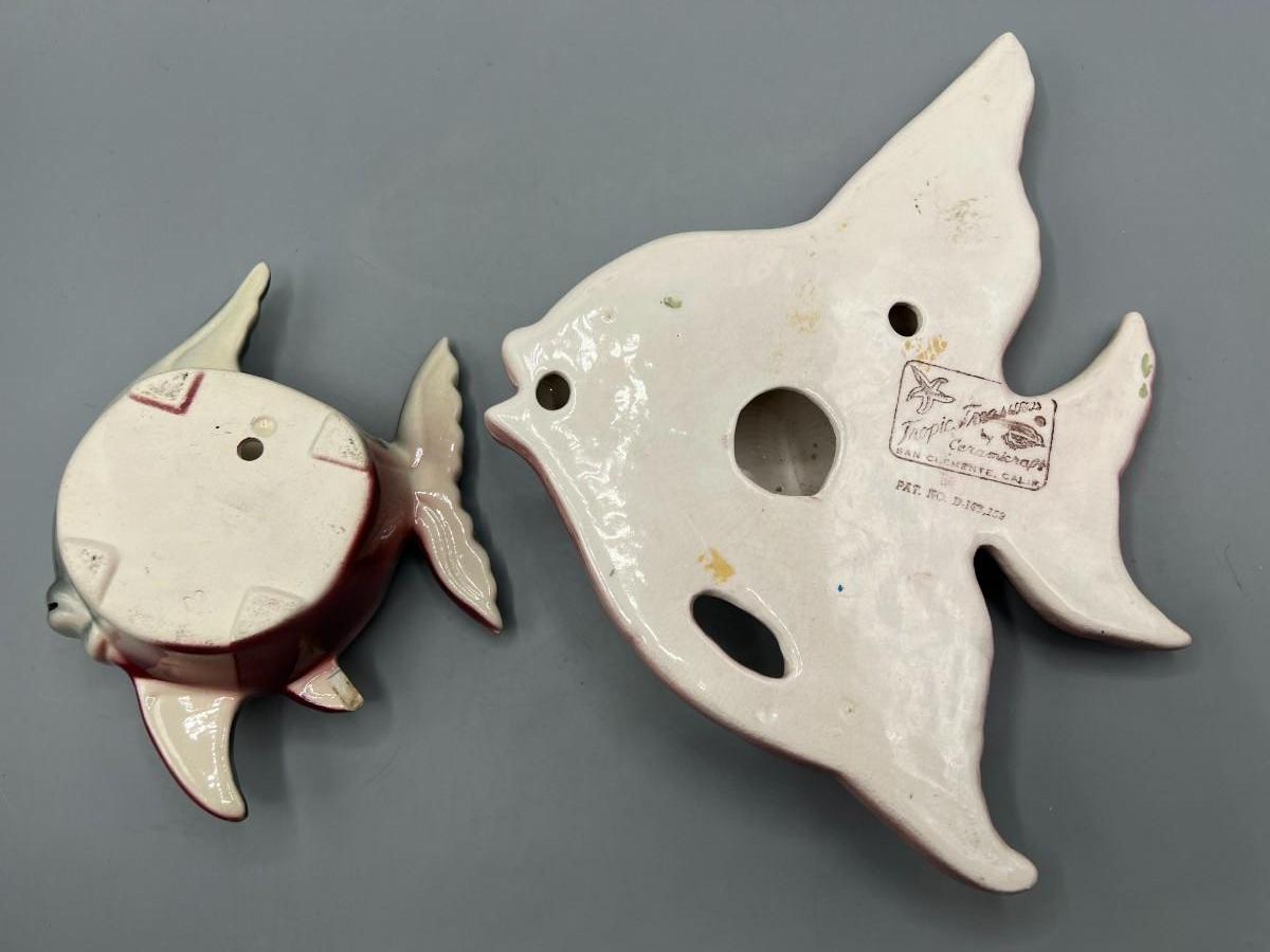 Pair of Retro Tropic Treasures Pink Red Ceramic Nautical Fish Hanging Decor