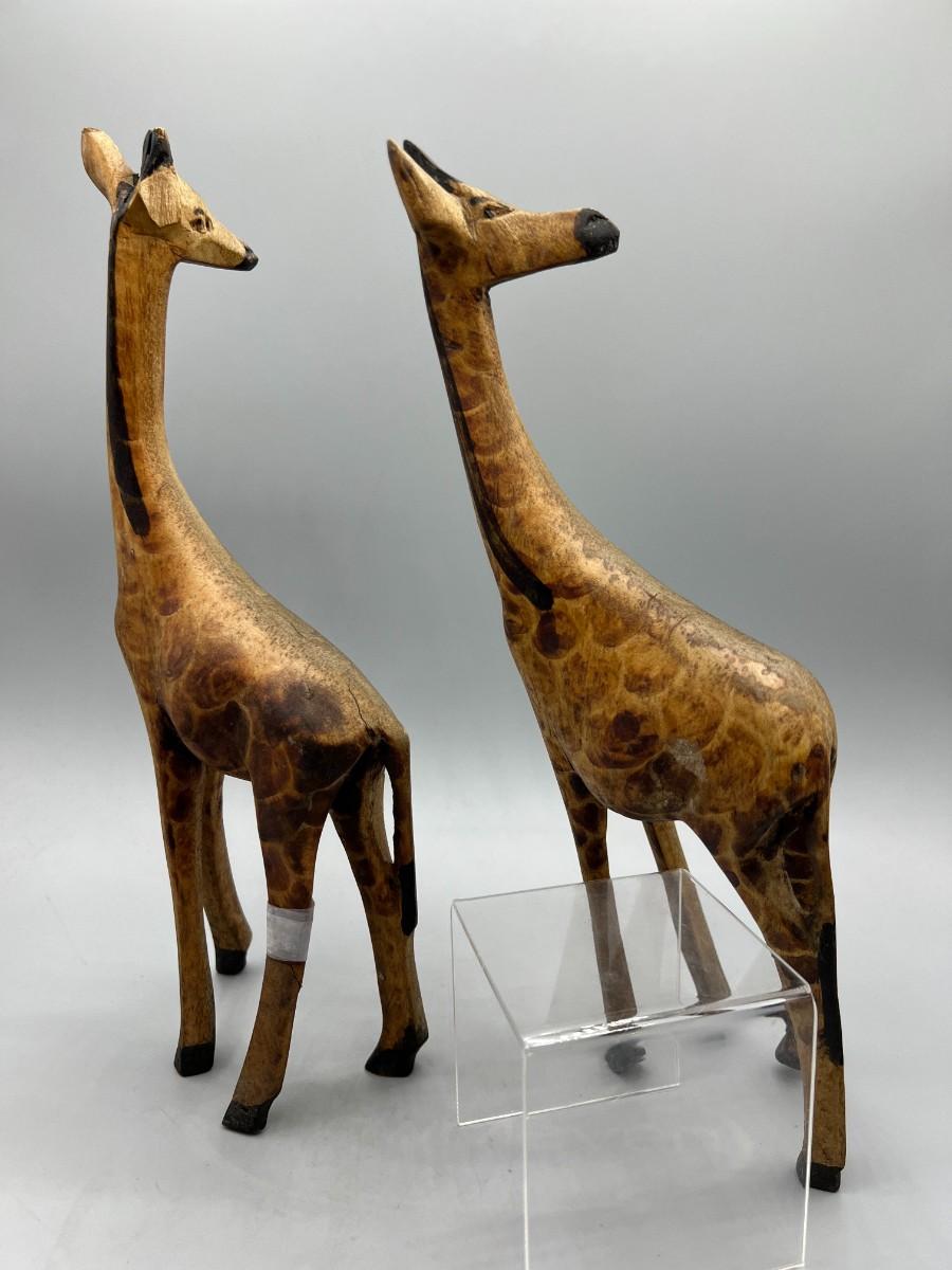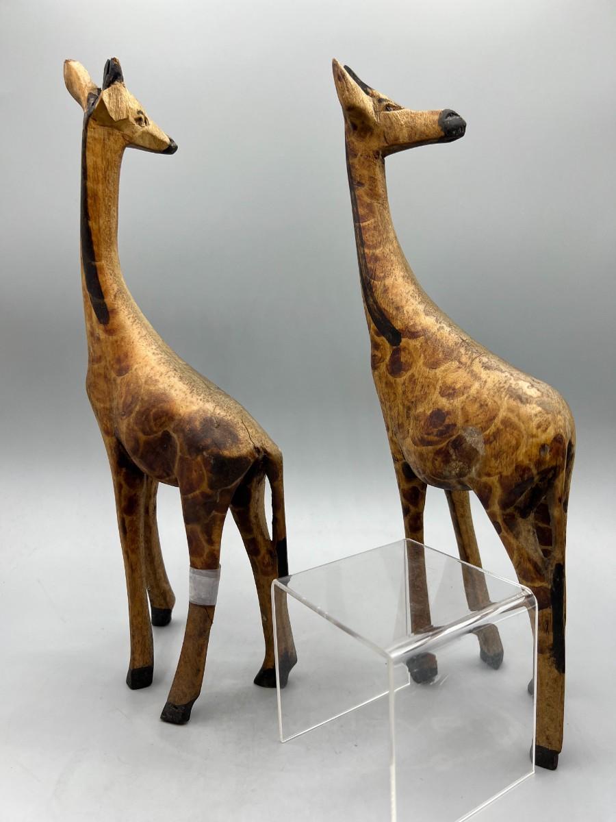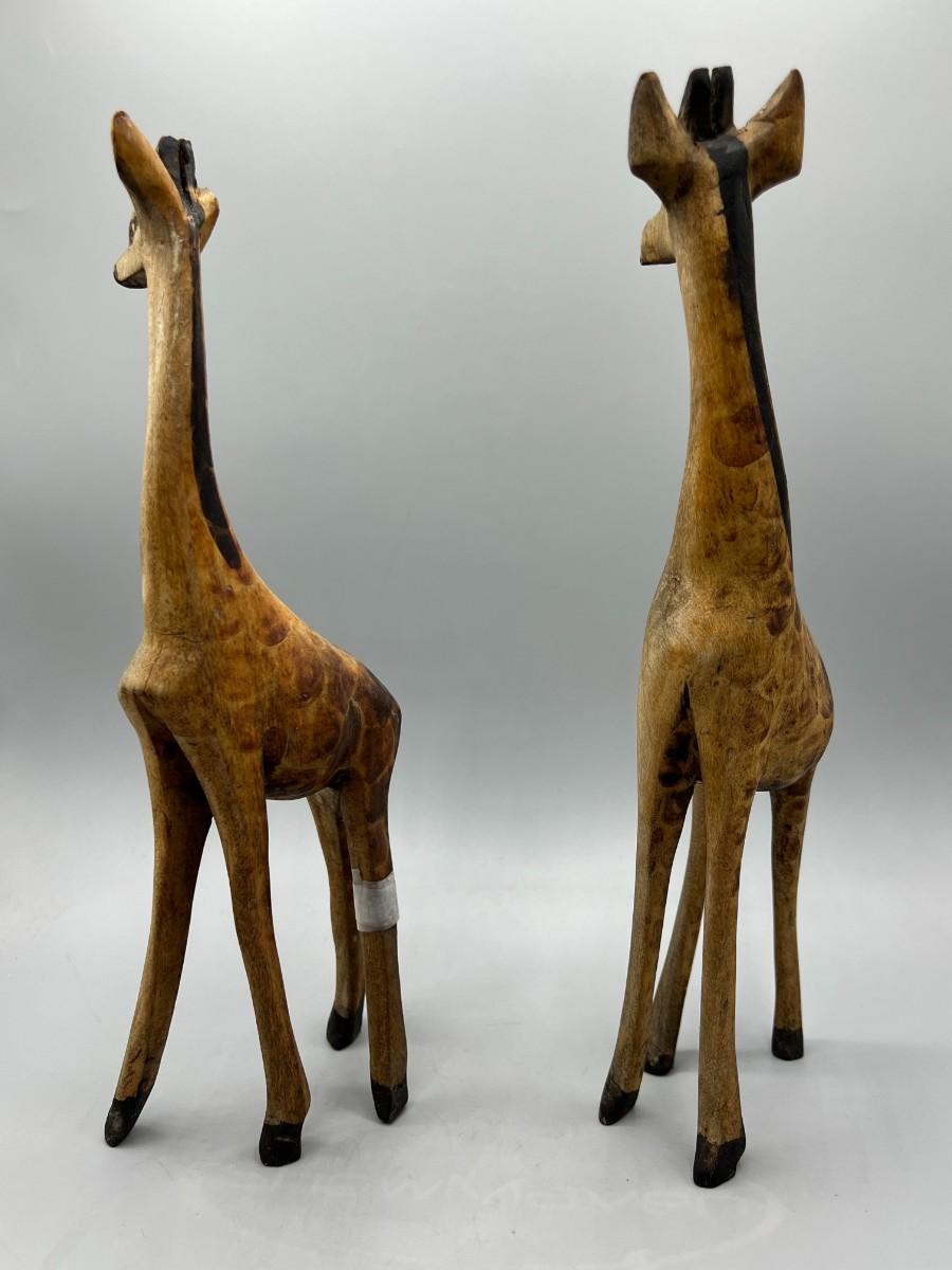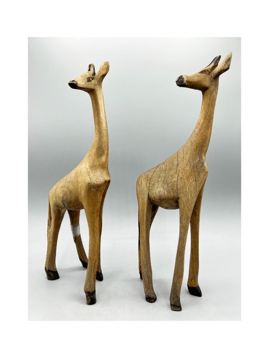 Pair of Retro Wood Carved Giraffe Figurines Statues