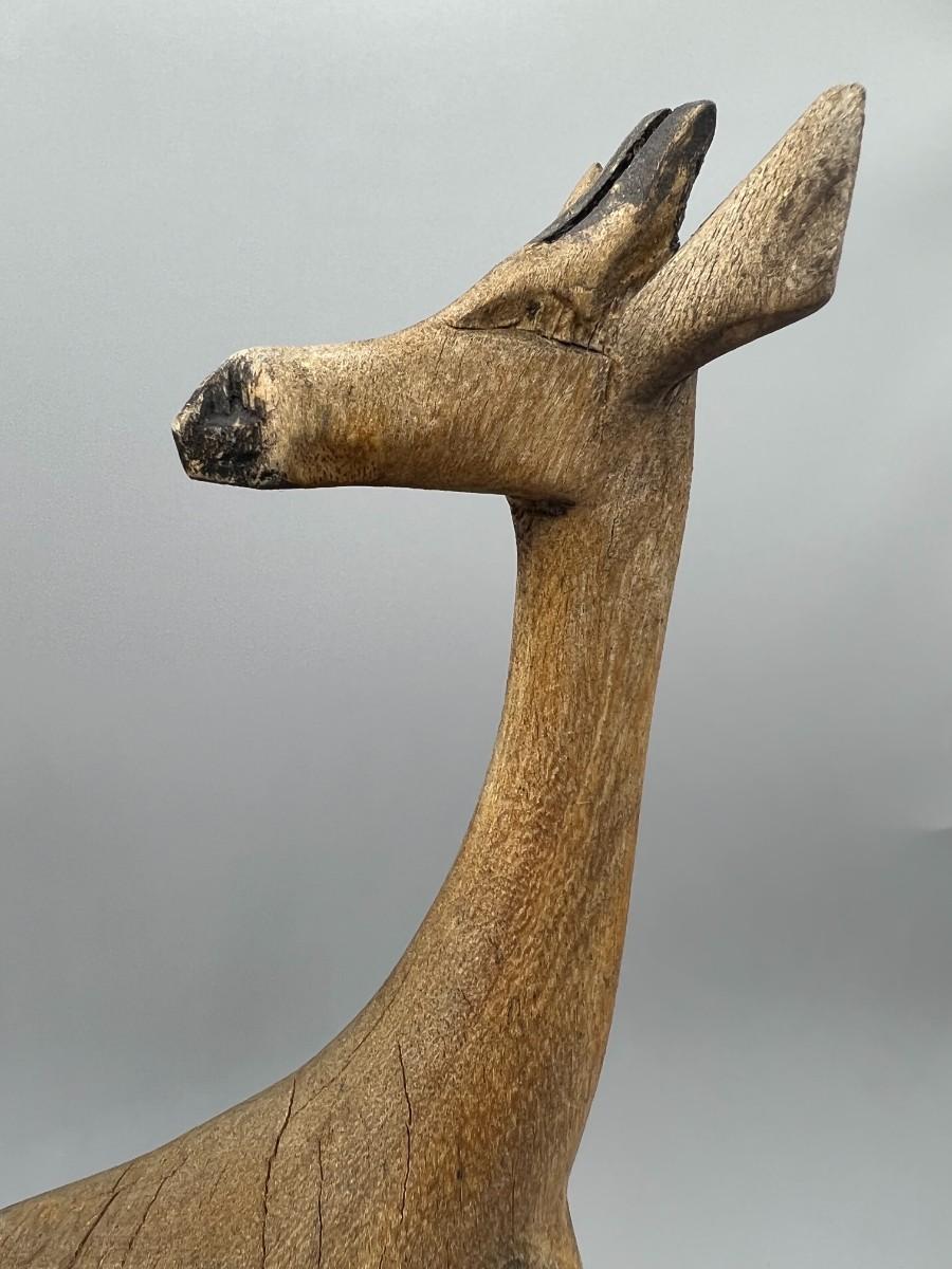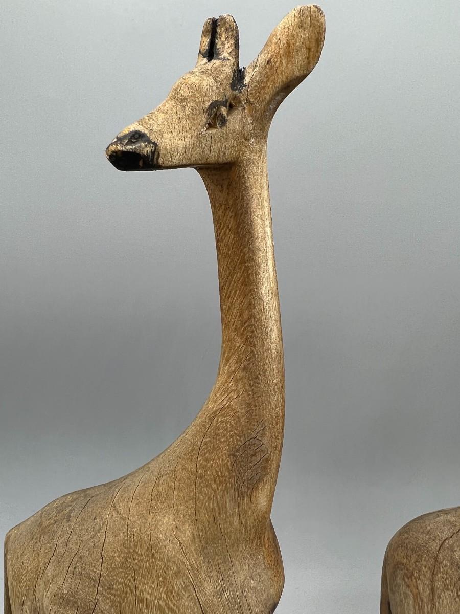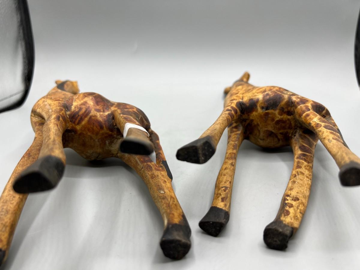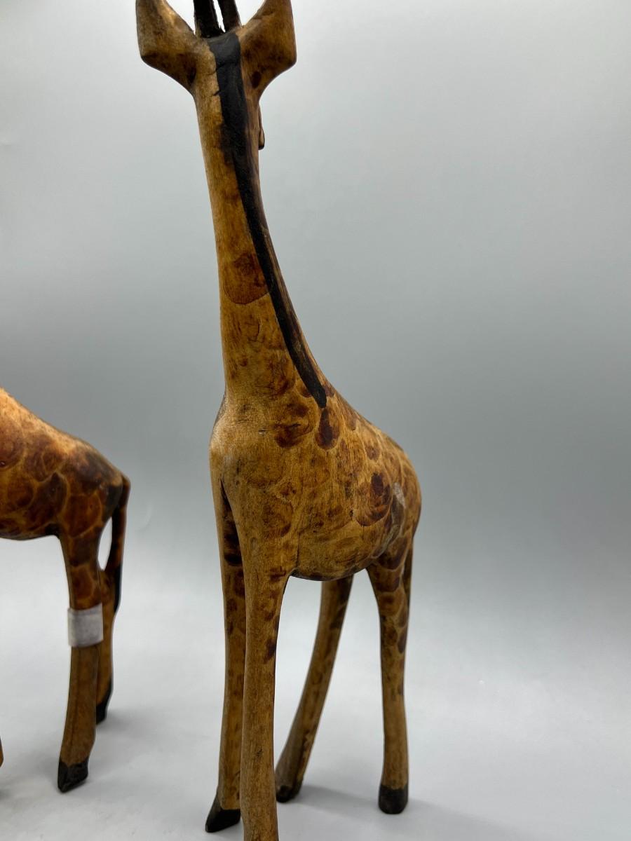Pair of Retro Wood Carved Giraffe Figurines Statues