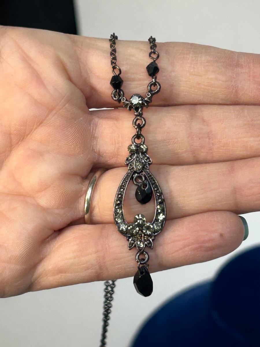 Pair of Rhinestone and Black Faceted Bead Fashion Pendant Necklaces. Both are in good condition. No missing stones.