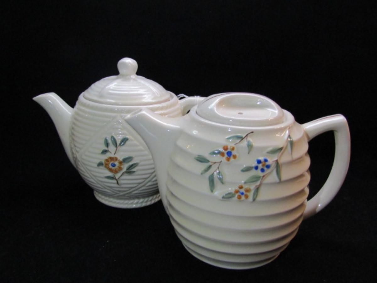 Pair of Ribbed Teapots by Porcelier- Dainty Flowers (#72)