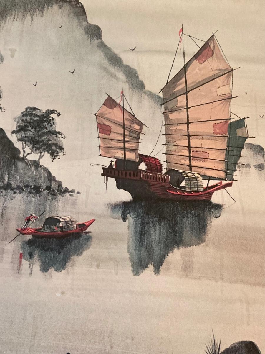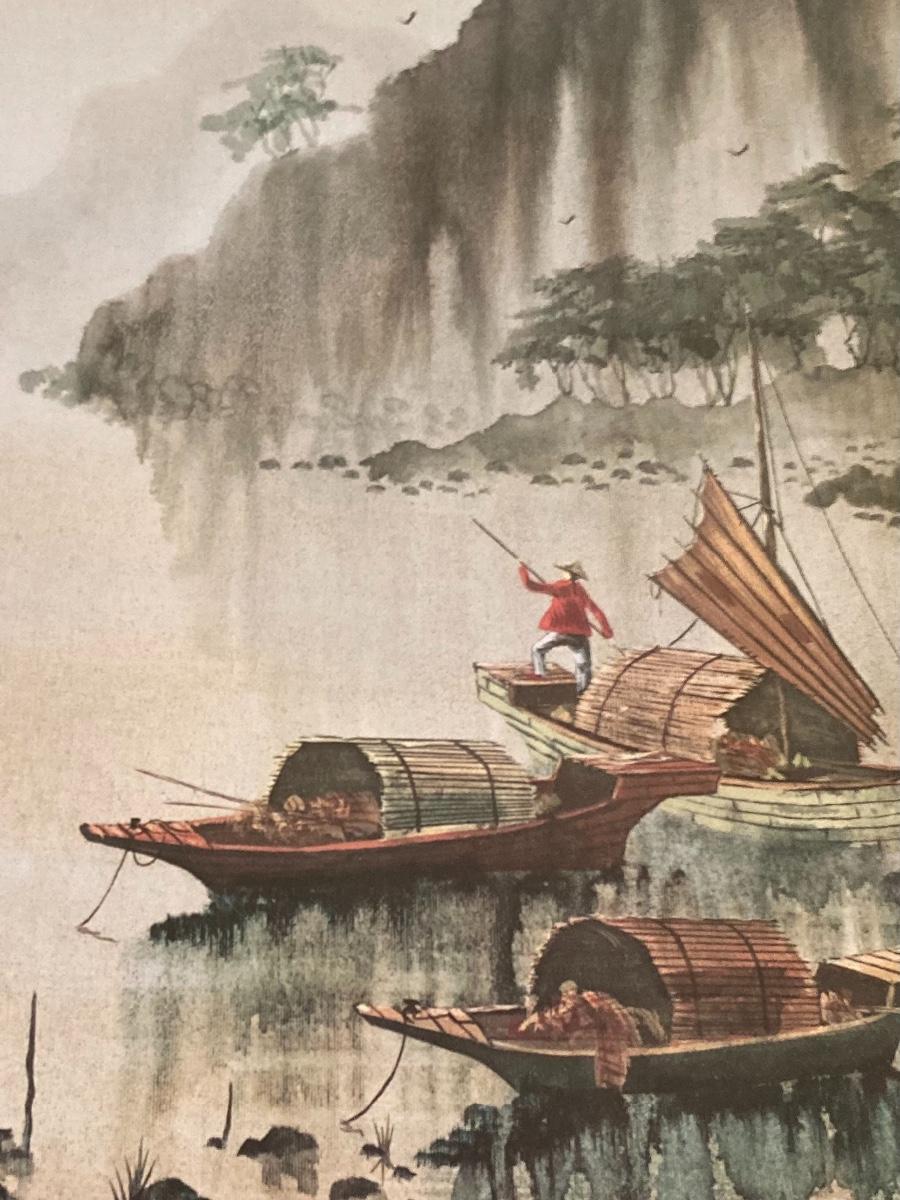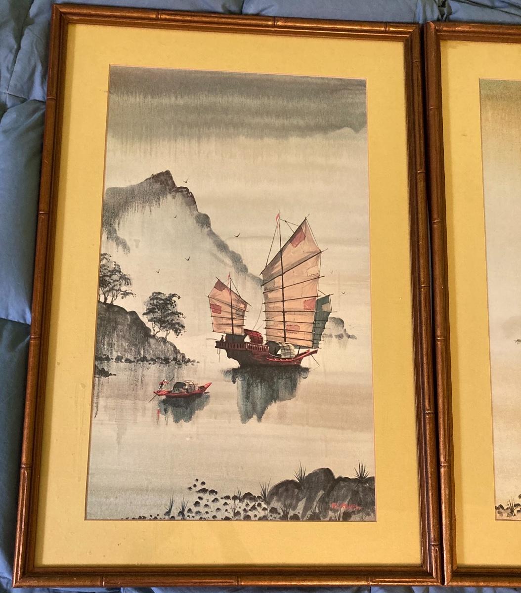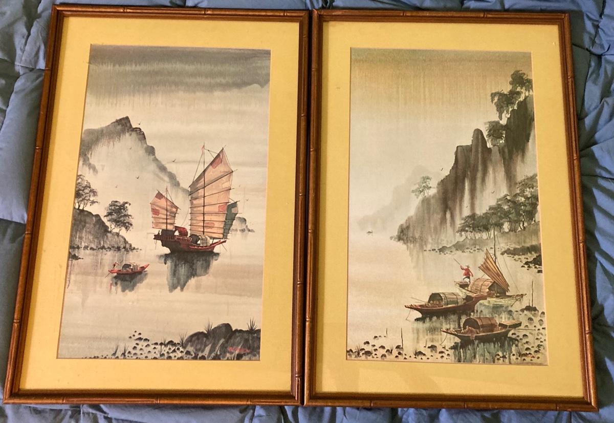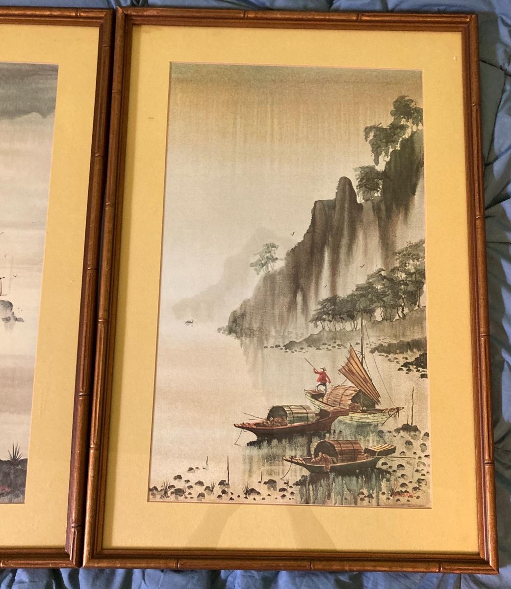 Pair of ROBERT E. RUSSELL Vintage Asian Lithographs 17 x 25”h