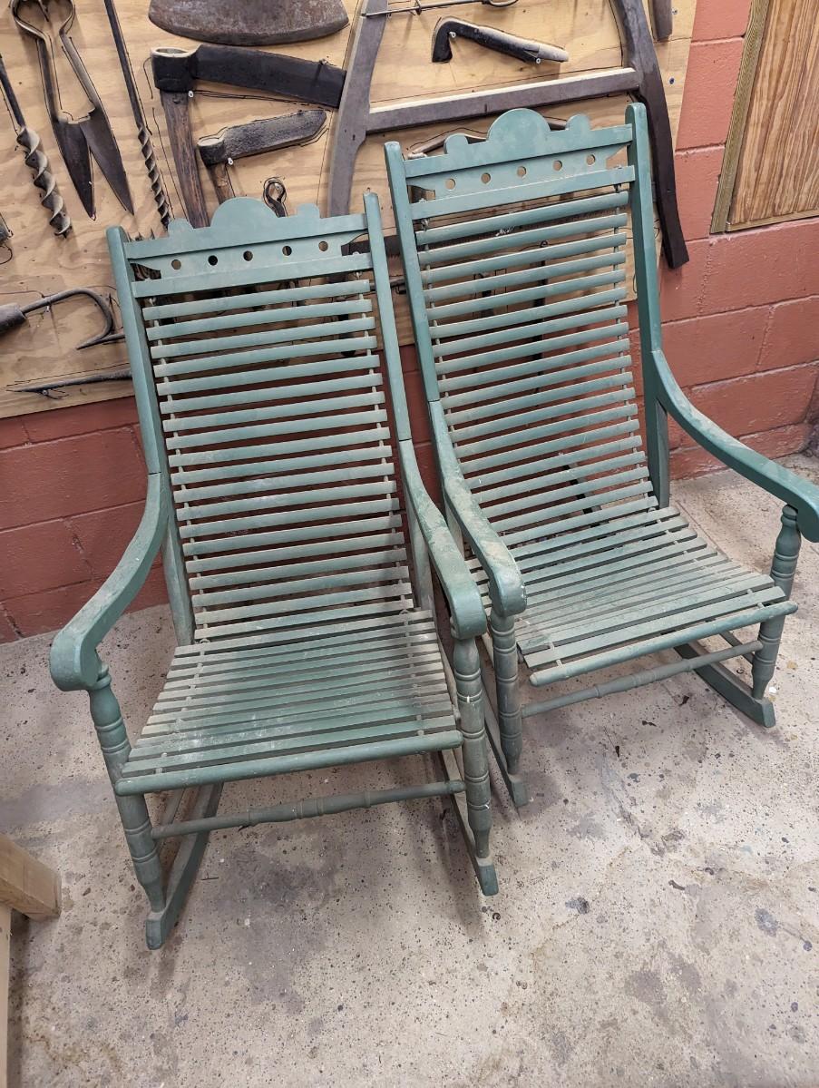 Pair of Antique Wood Eastlake Design Porch Rocking Chairs