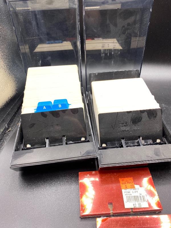 Pair of Rolodex phone number organizers. Come with extra red plastic divider cards. Unused, just dusty.