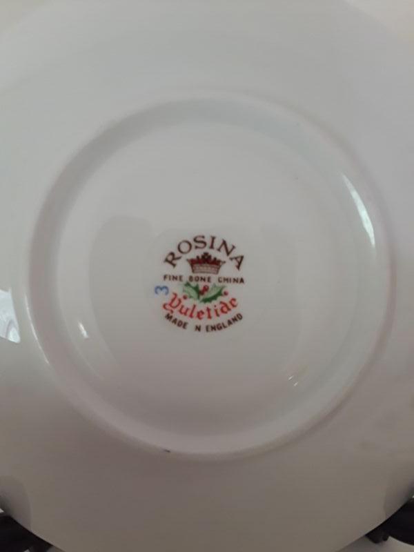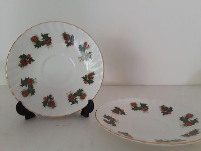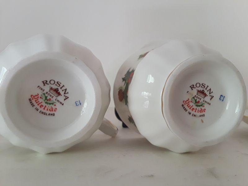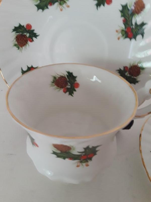 Pair of Christmas Teacups and Saucers. Rosina "Yuletide" Pattern. Made in England.