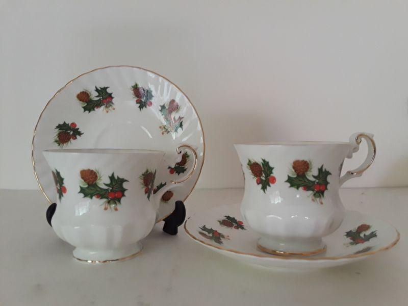 Pair of Rosina Tea Cups & Saucers "Yuletide" Pattern