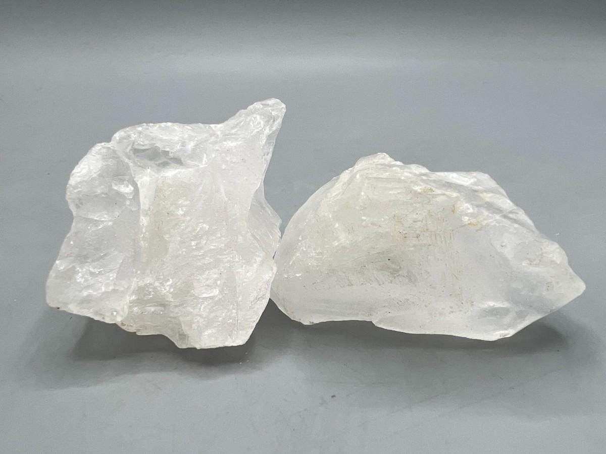 Pair of Rough Chunk Crystal Quartz Rocks. About 2" size rough stone pieces.