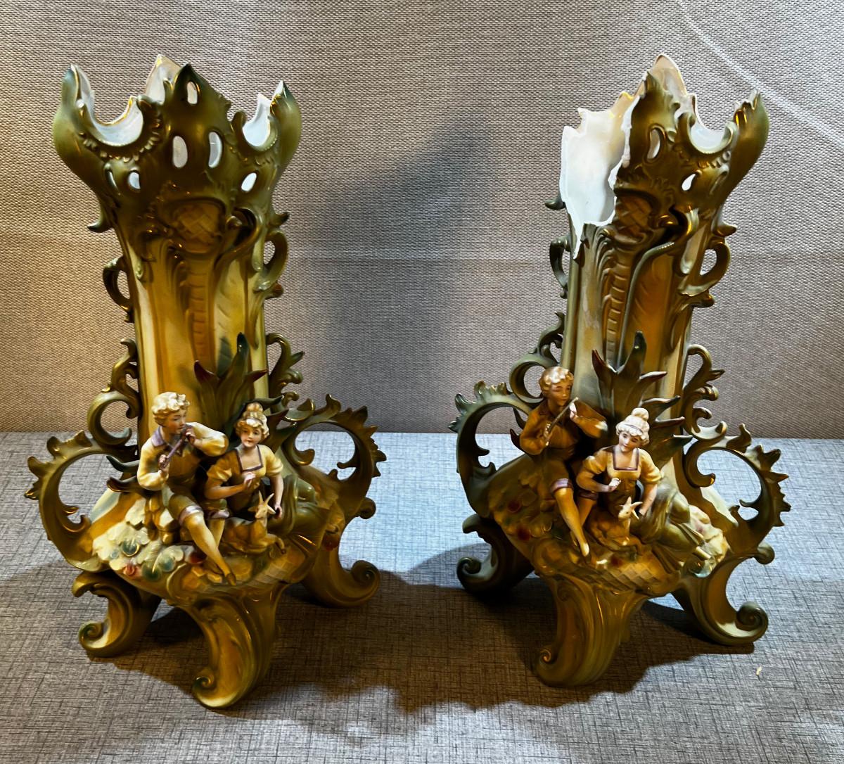 Pair of Royal Dux Art Nouveau Vases MARKED Saxony