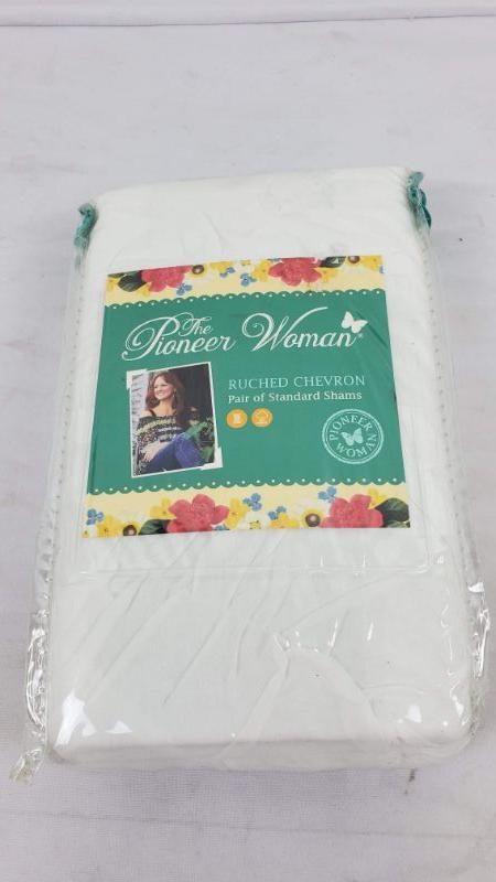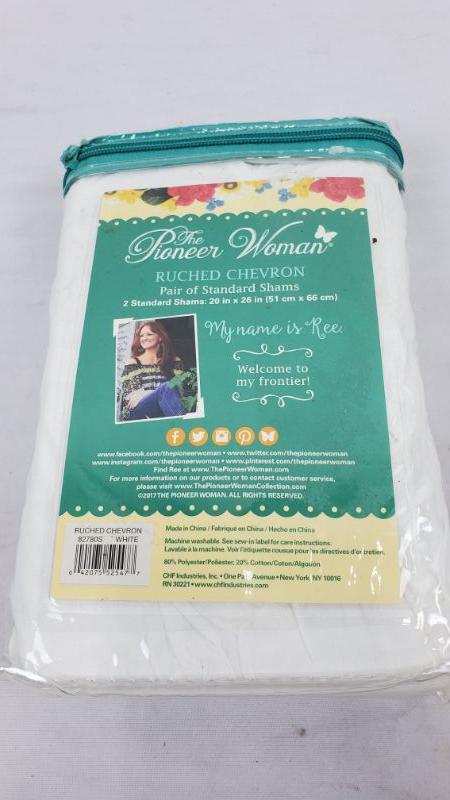 Pair of Ruched Chevron White Standard Shams, The Pioneer Woman - New