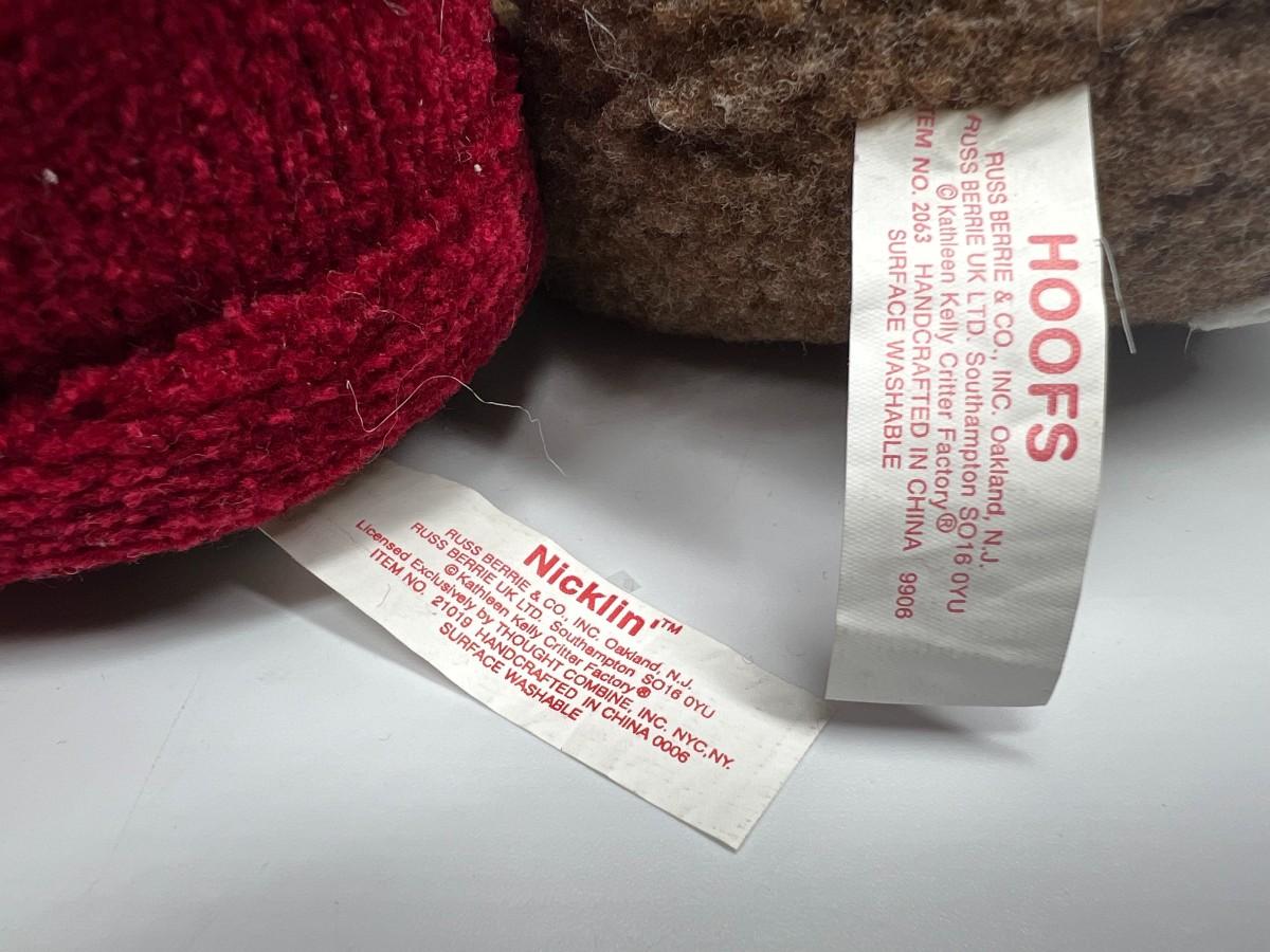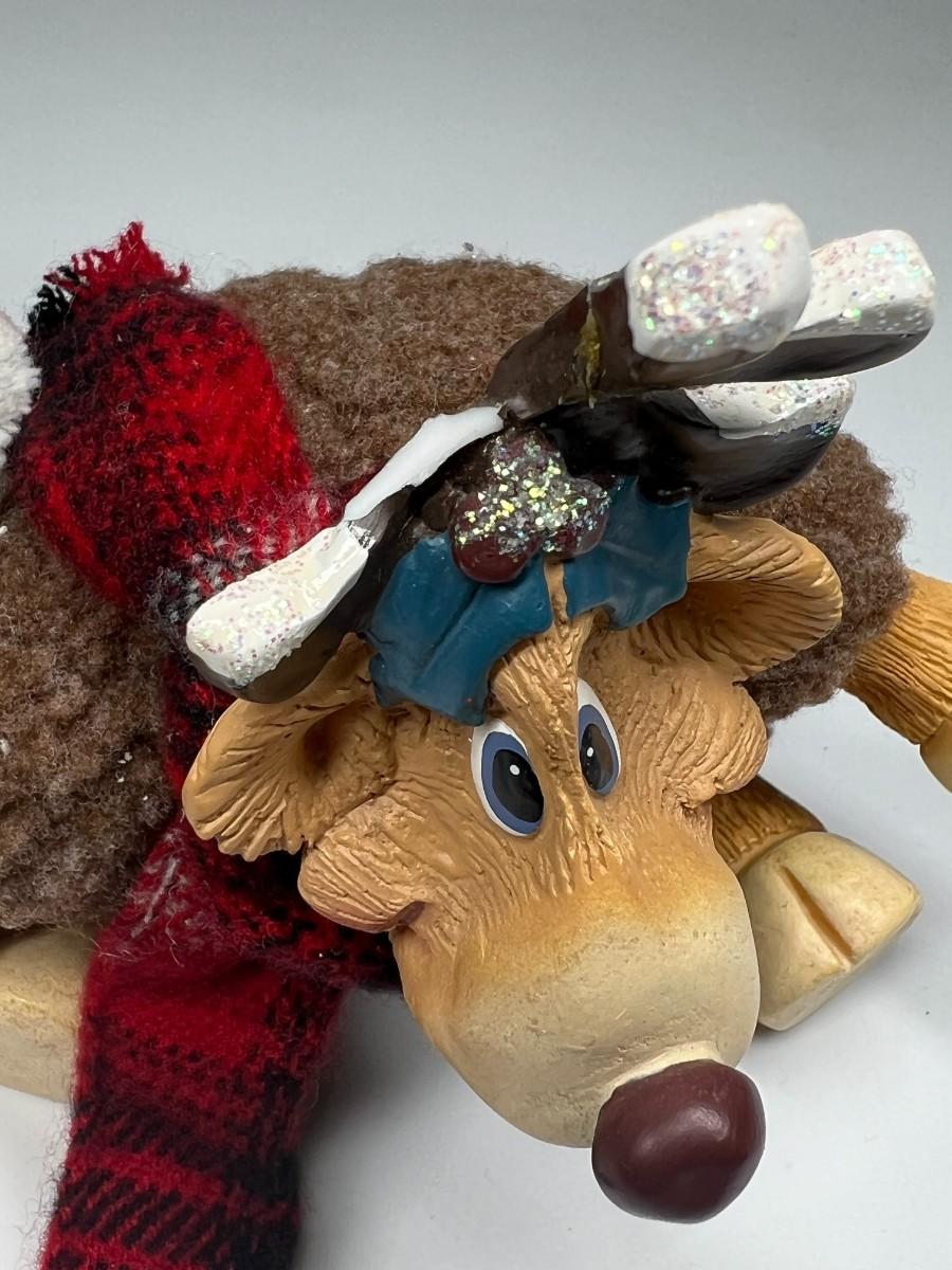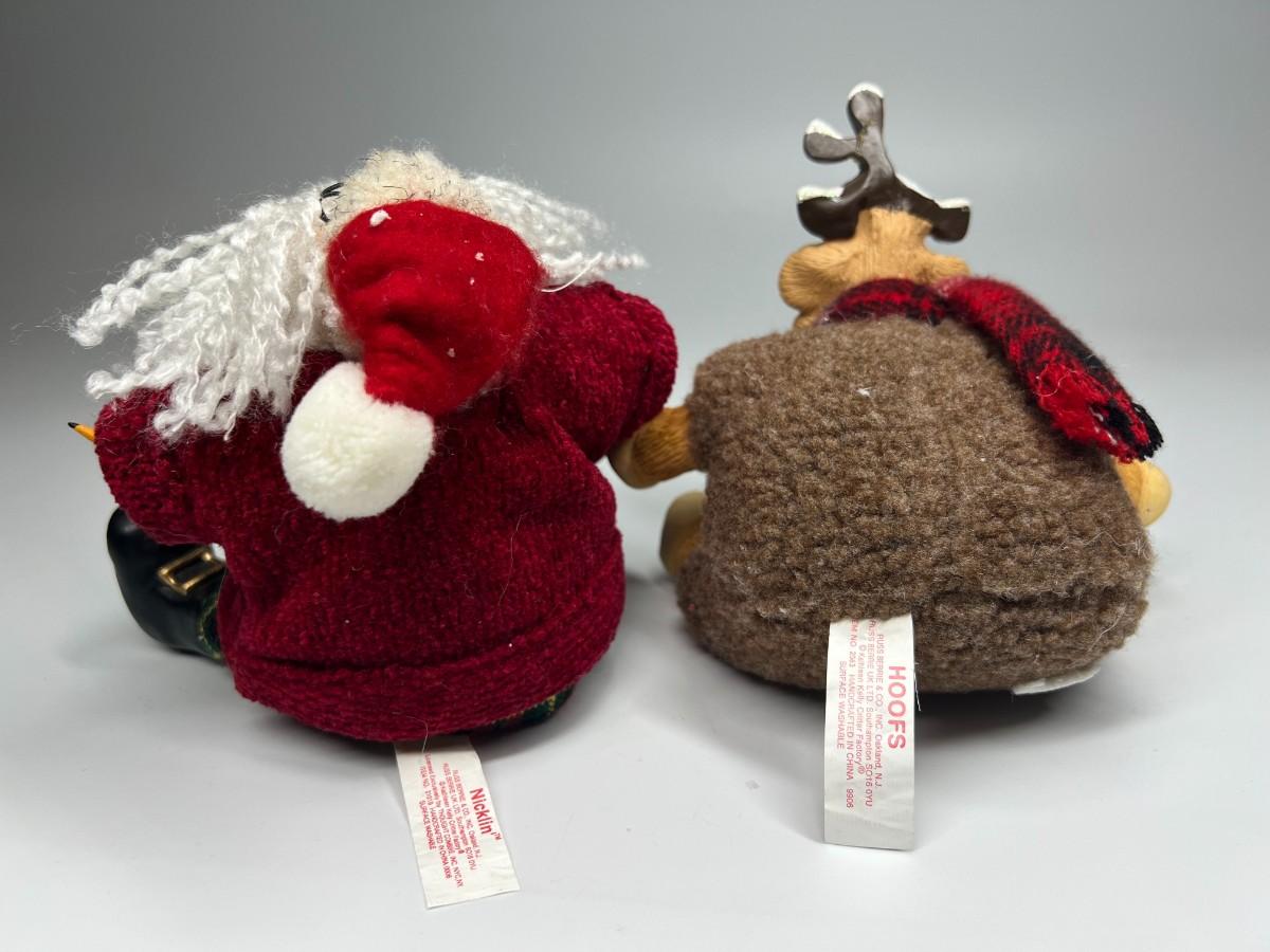 Pair of Russ Berrie & Co. Nicklin & Hoofs Christmas Chubby Santa Claus Reindeer  Shelf Sitter Figurines