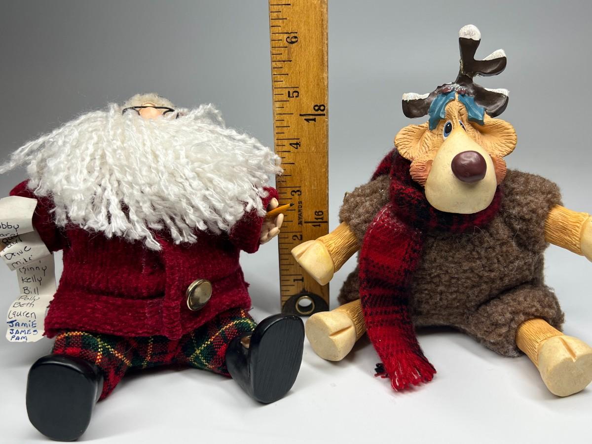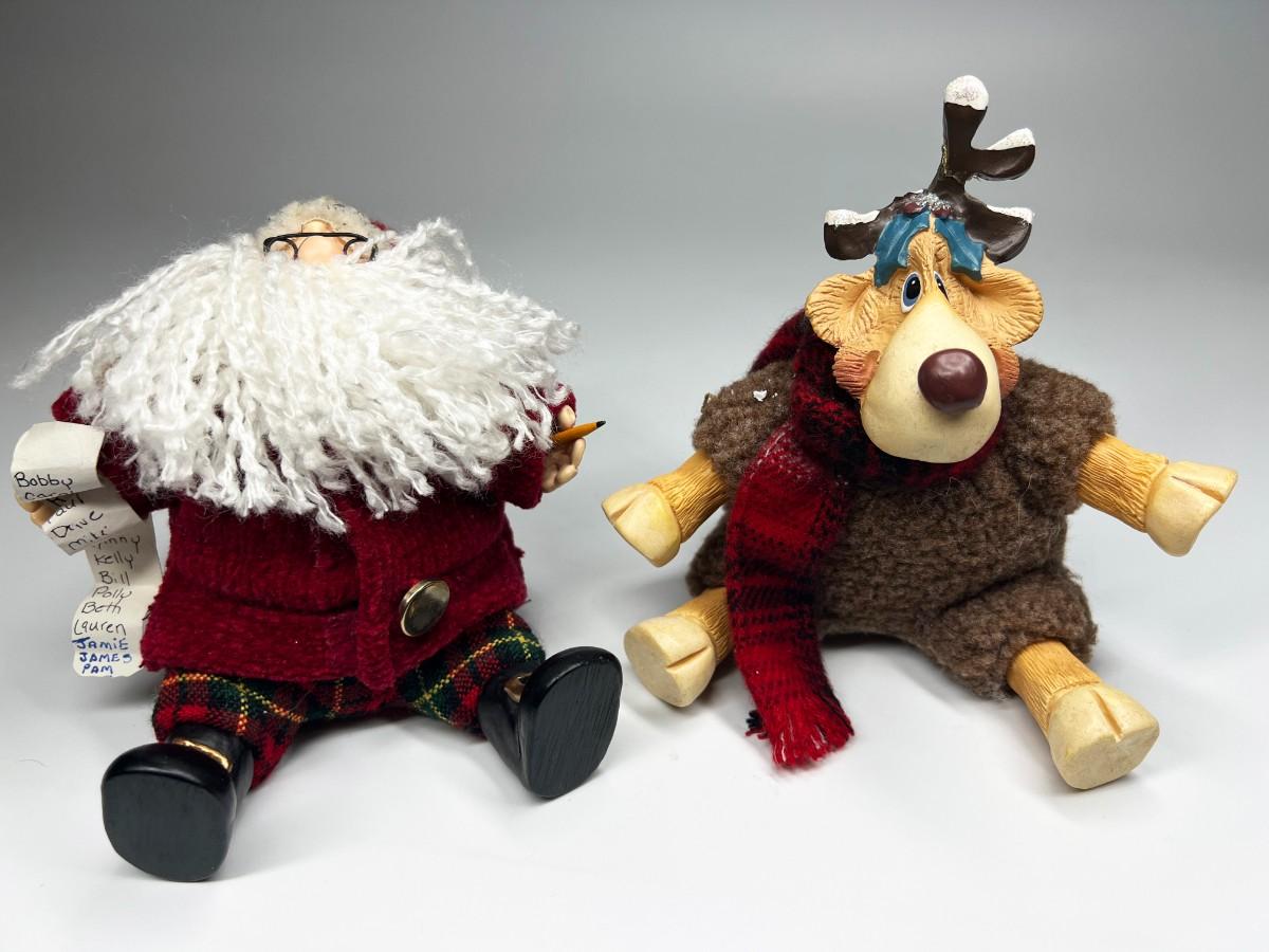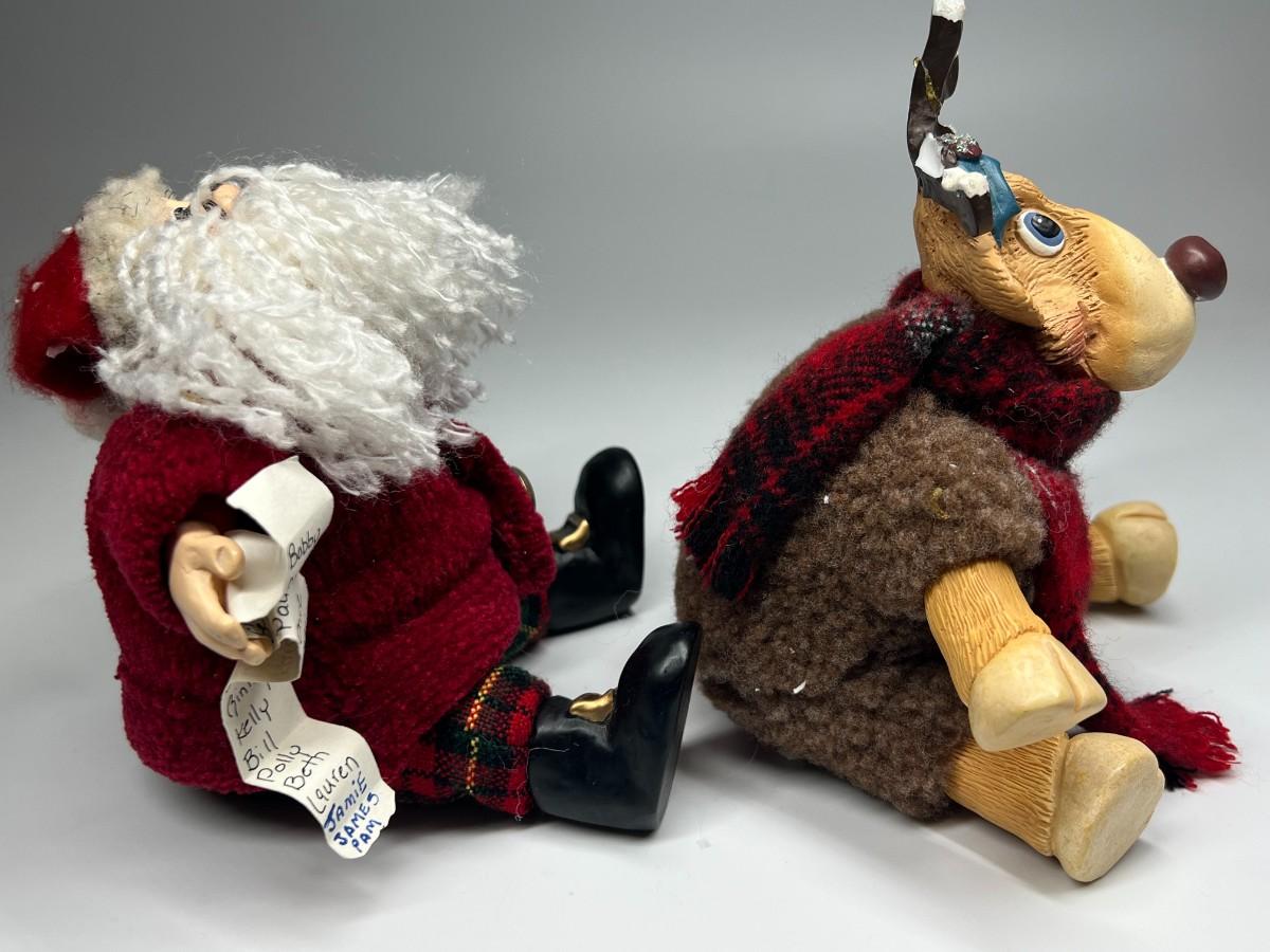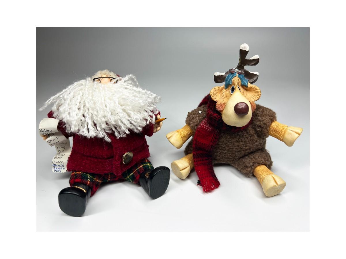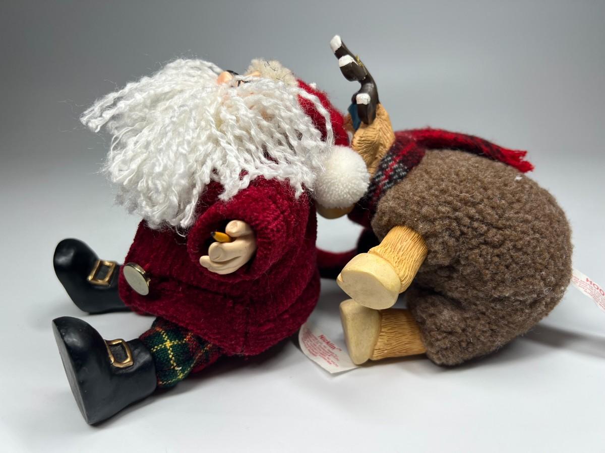 Pair of Russ Berrie & Co. Nicklin & Hoofs Christmas Chubby Santa Claus Reindeer Shelf Sitter Figurines