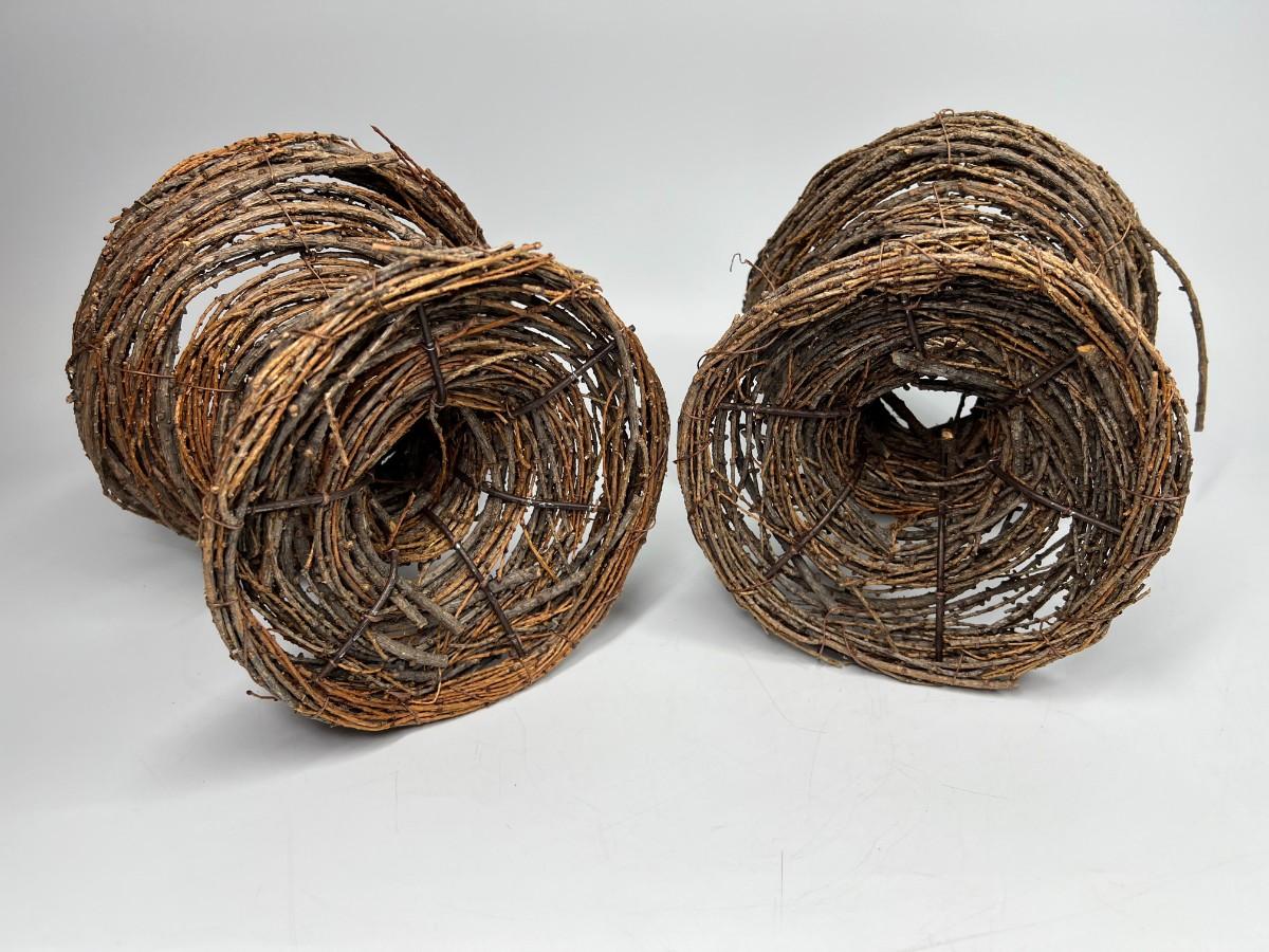 Pair of Rustic Grapevine Weaved Pedestal Home Decor Display Stands