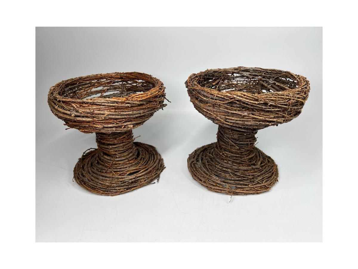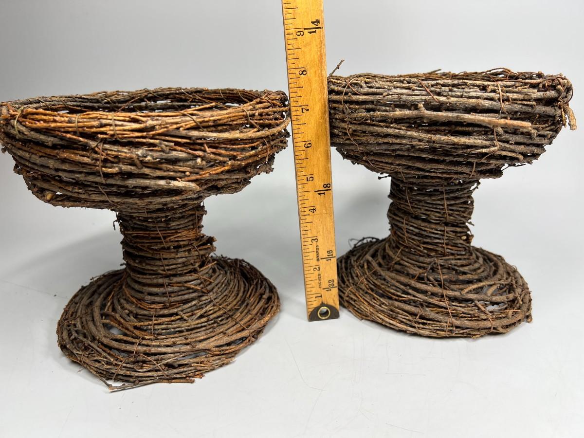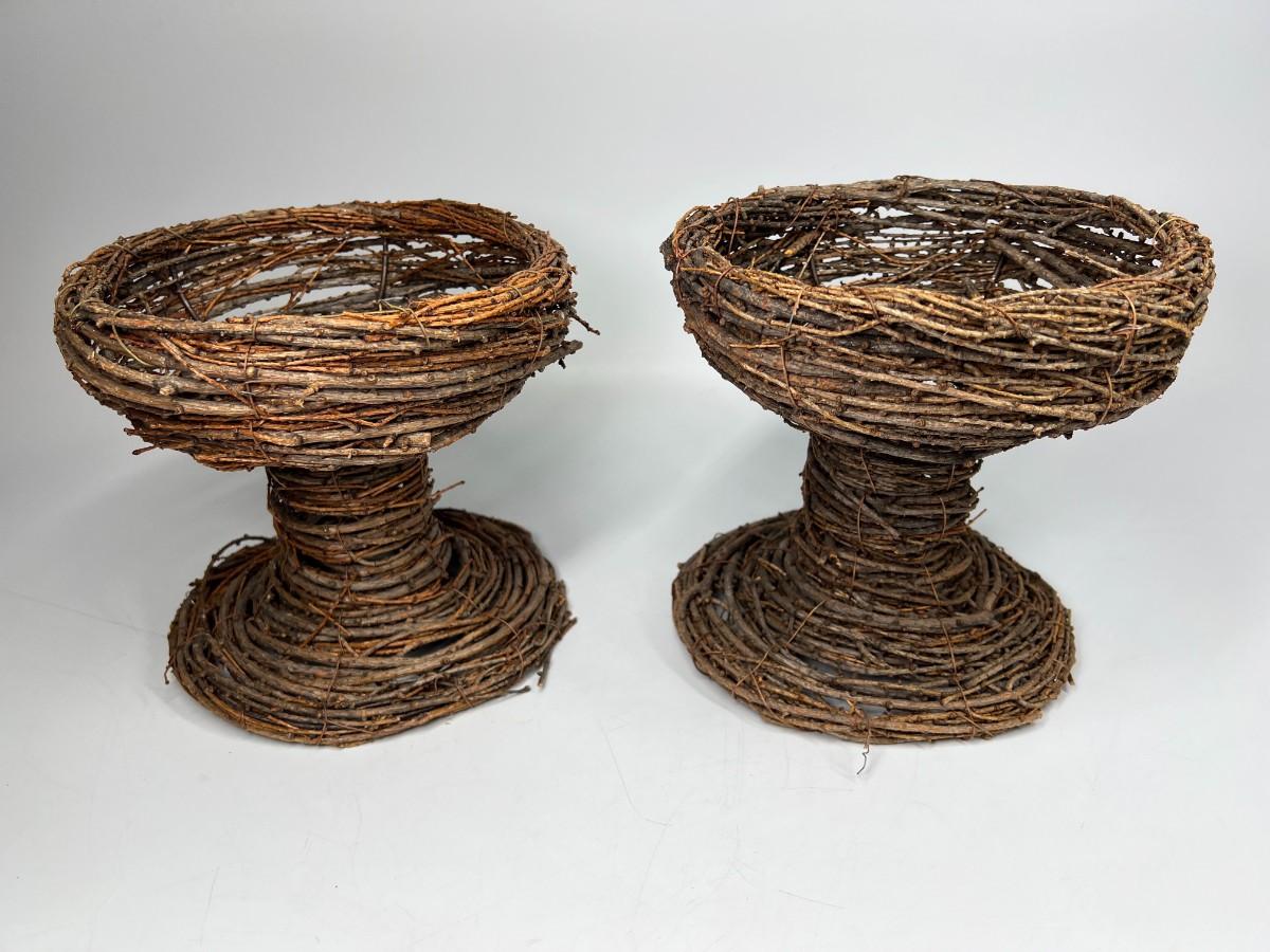 Pair of Rustic Grapevine Weaved Pedestal Home Decor Display Stands, there is no significant damage to the pedestal stands and is in good displayable condition. Check pictures for more details and for sizing.