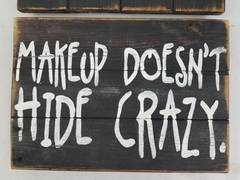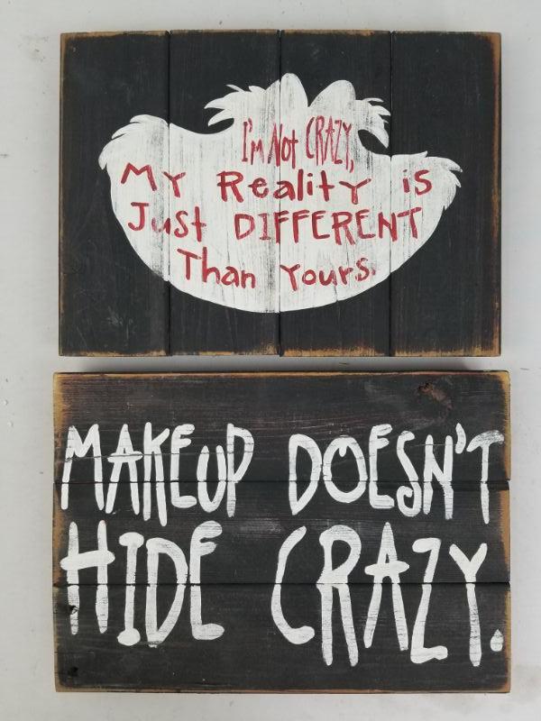 Pair of Rustic Wood Wall Decor "Crazy" Signs 14" x 9.75"