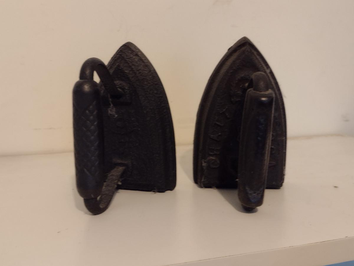 Pair of Sad Irons. One has break in handle- please see all pictures for condition.