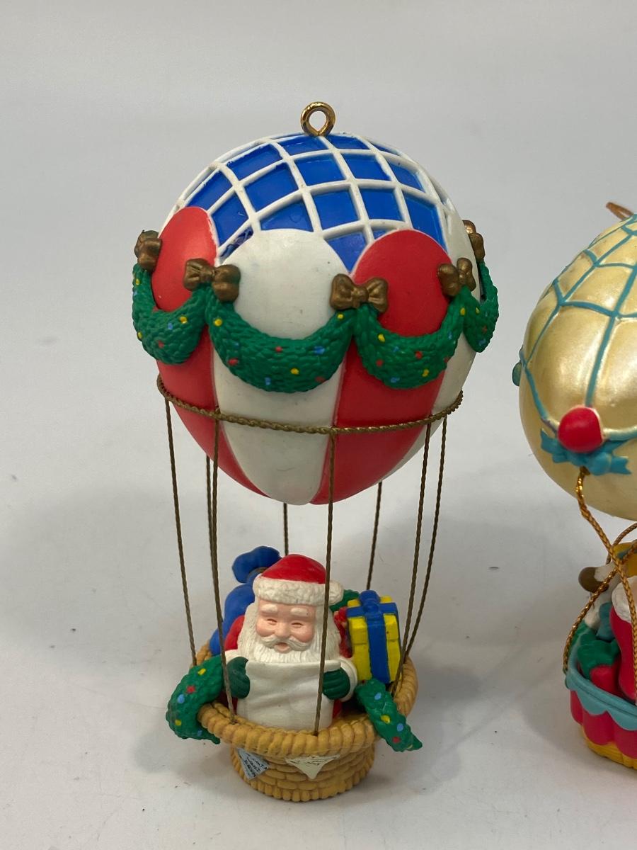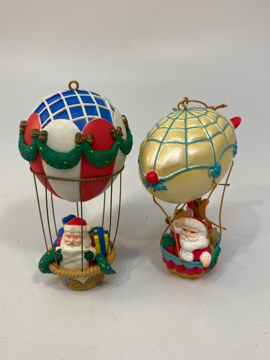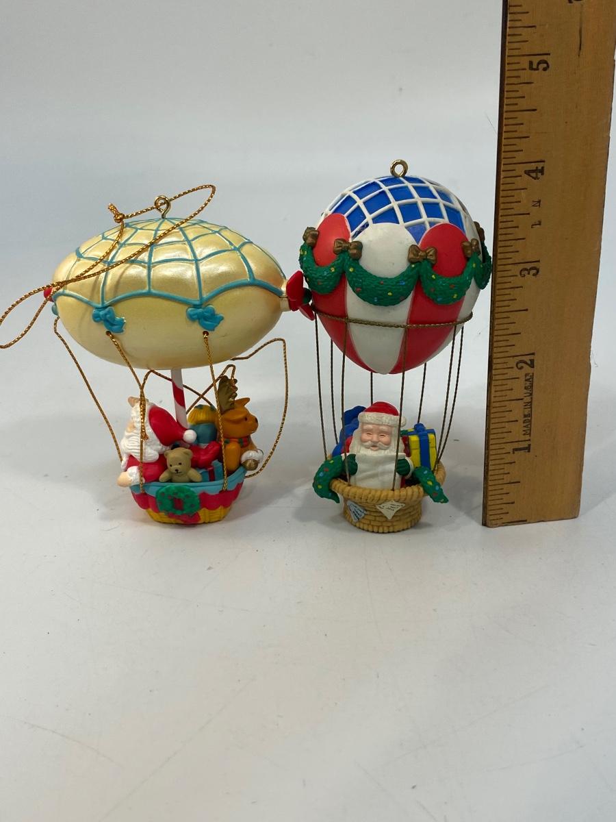 Pair of Santa Claus Hot Air Balloon Christmas Holiday Tree Ornaments