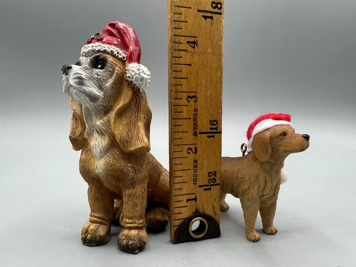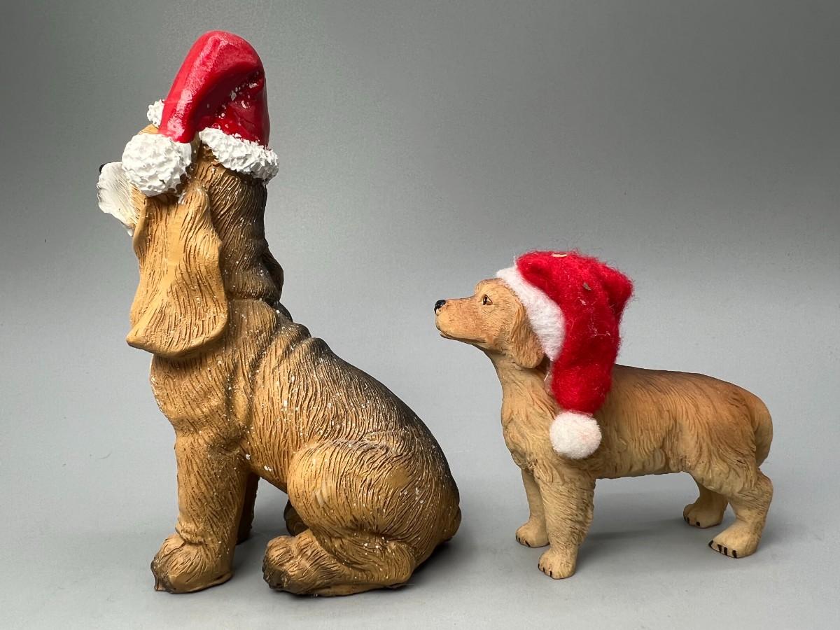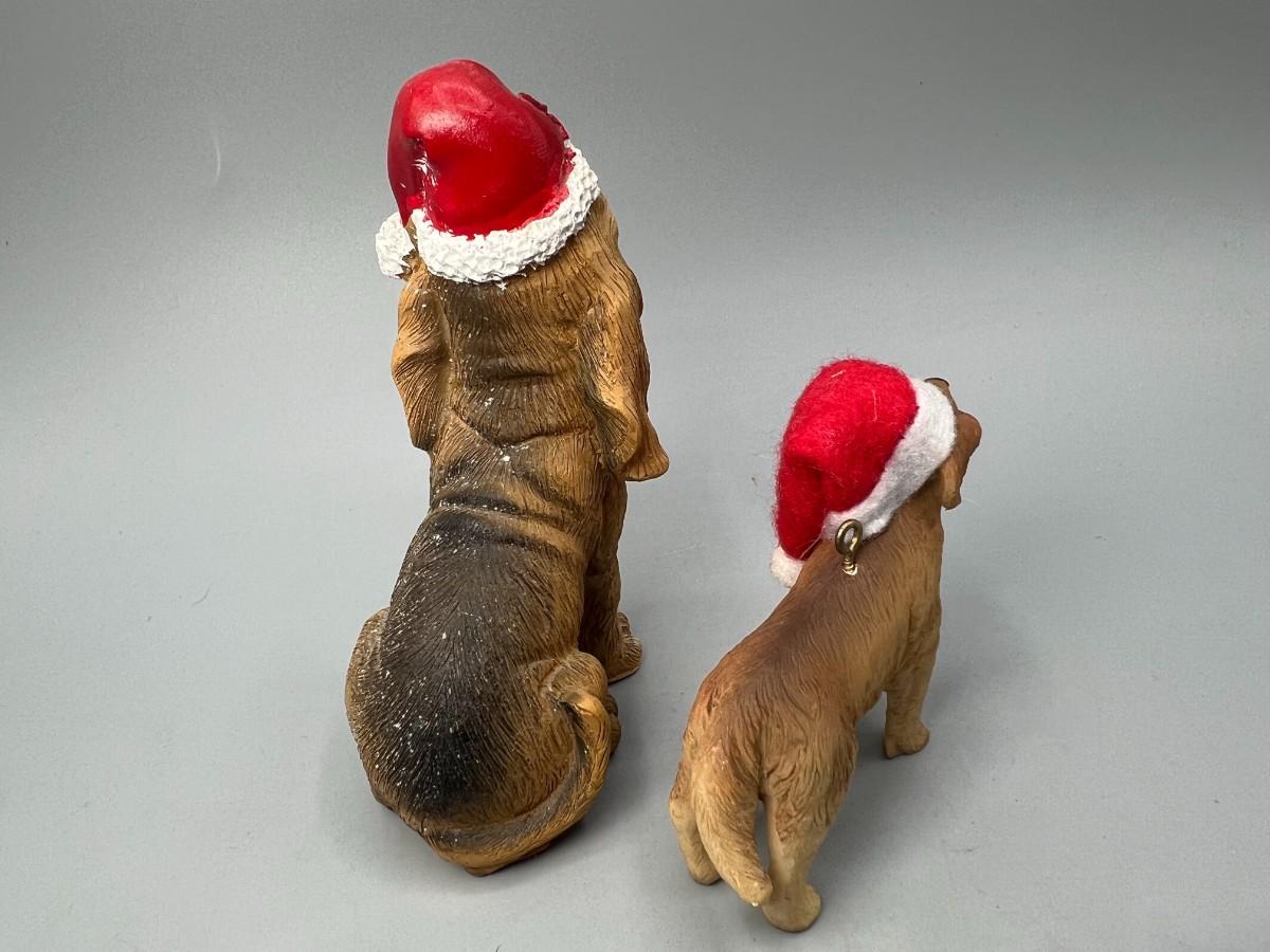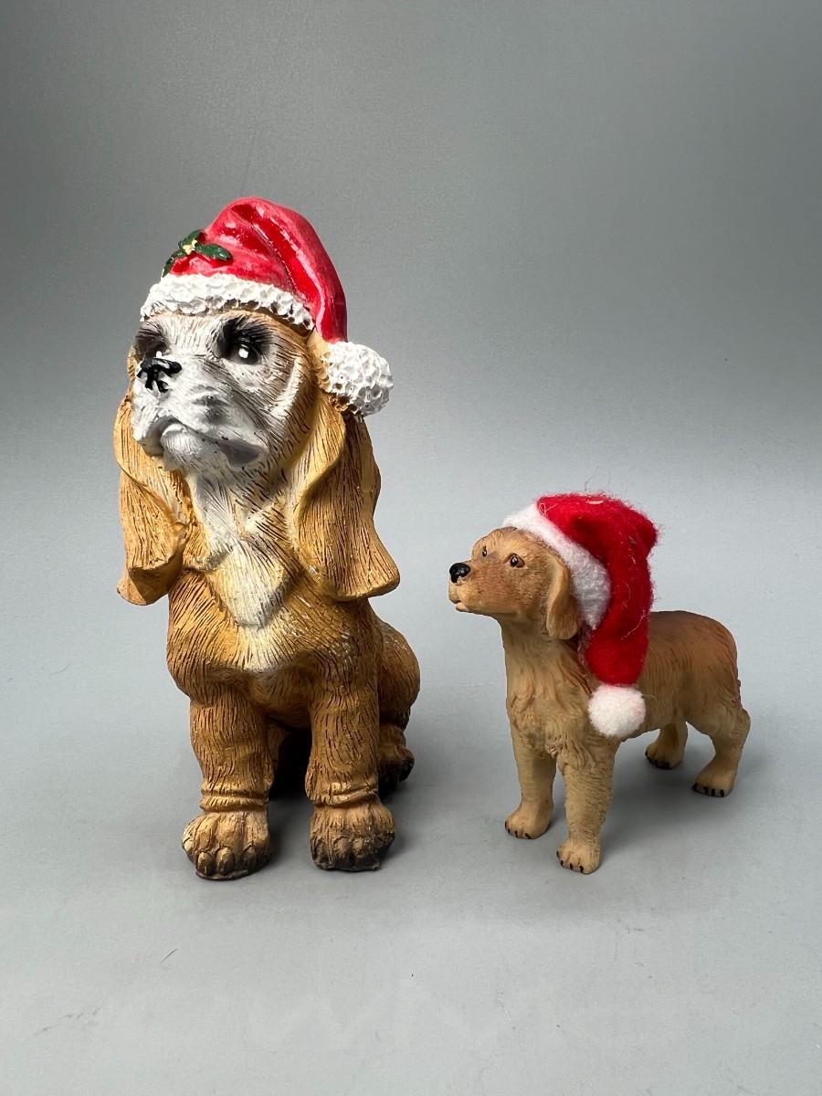 Pair of Santa Hat Wearing Dog Figurines. About 4" size and smaller.