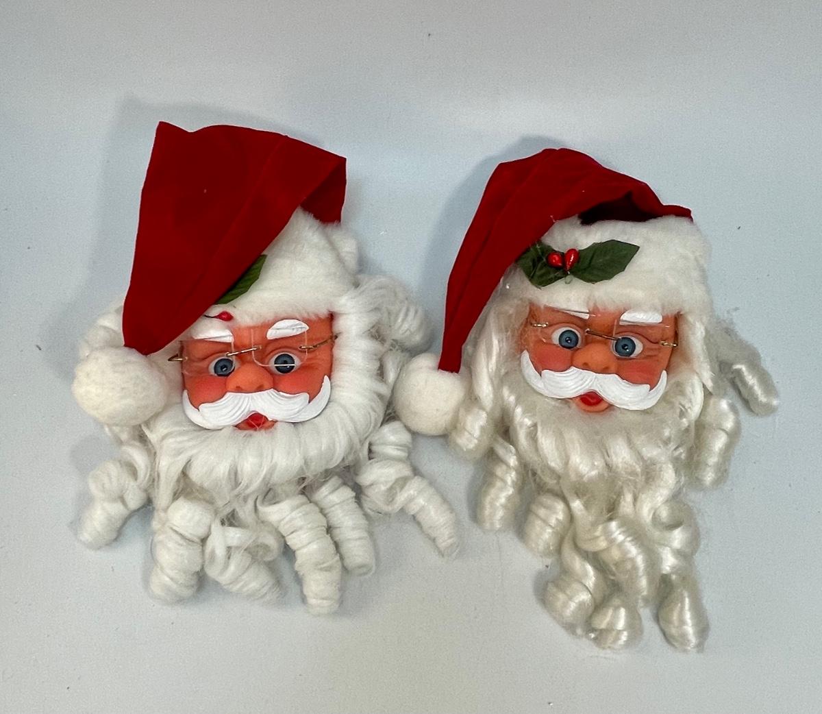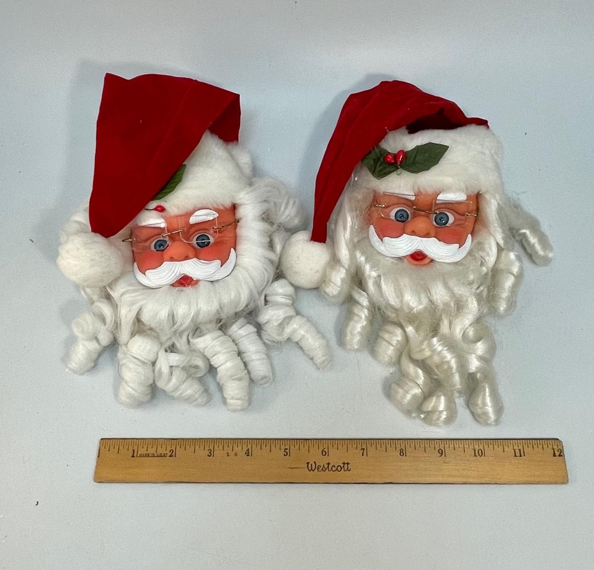 Pair of Santa Heads Battery Operated Vintage Christmas decor Santa's face