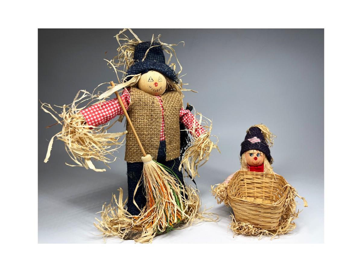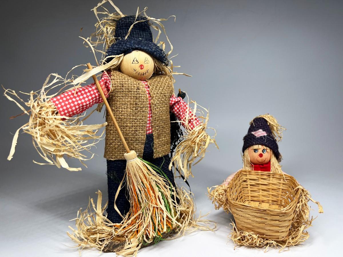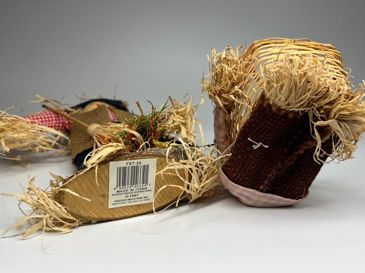 Pair of Scarecrow Weaved Hay Autumn Fall Rustic Decor