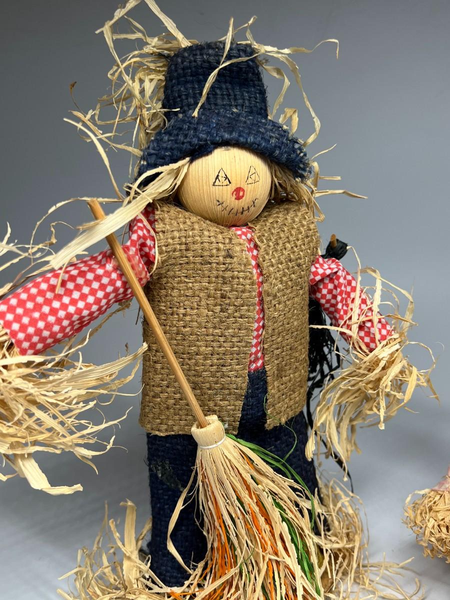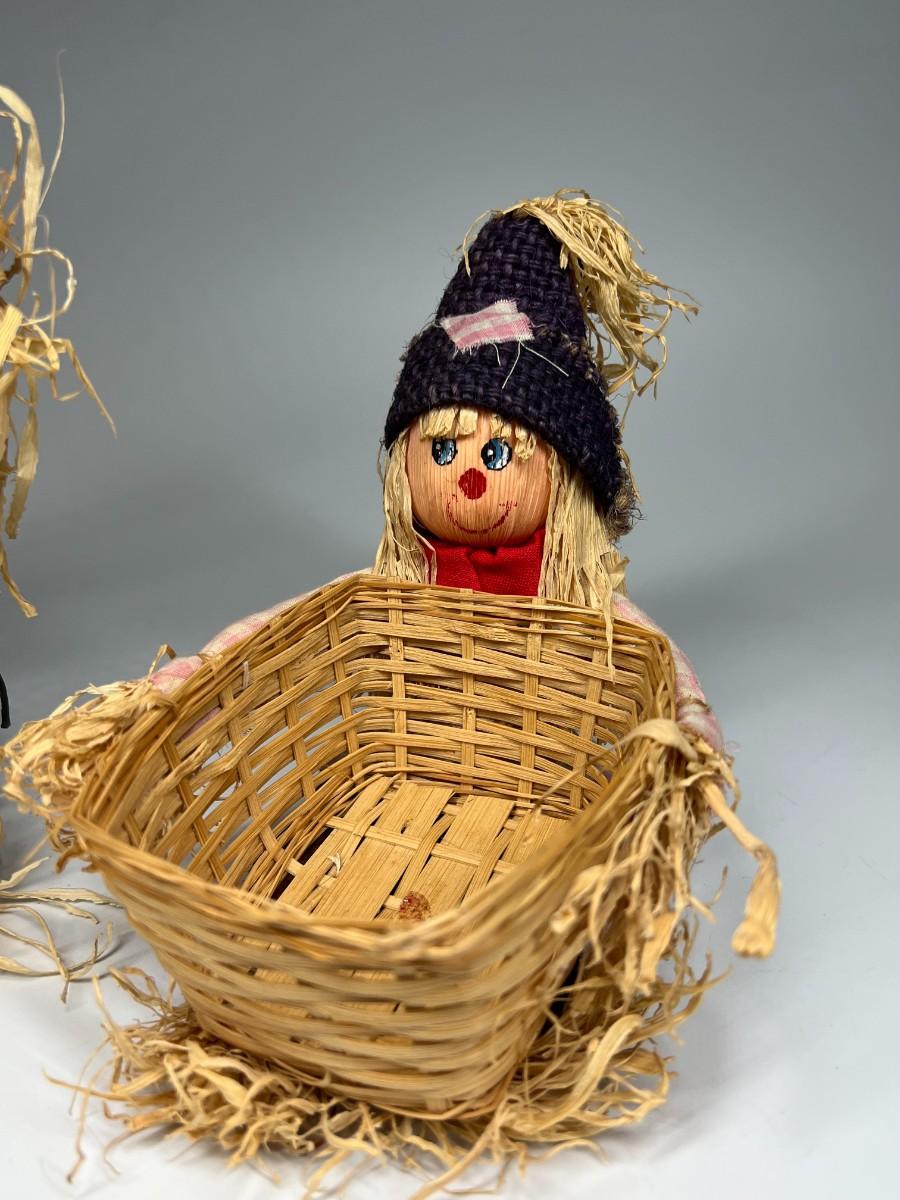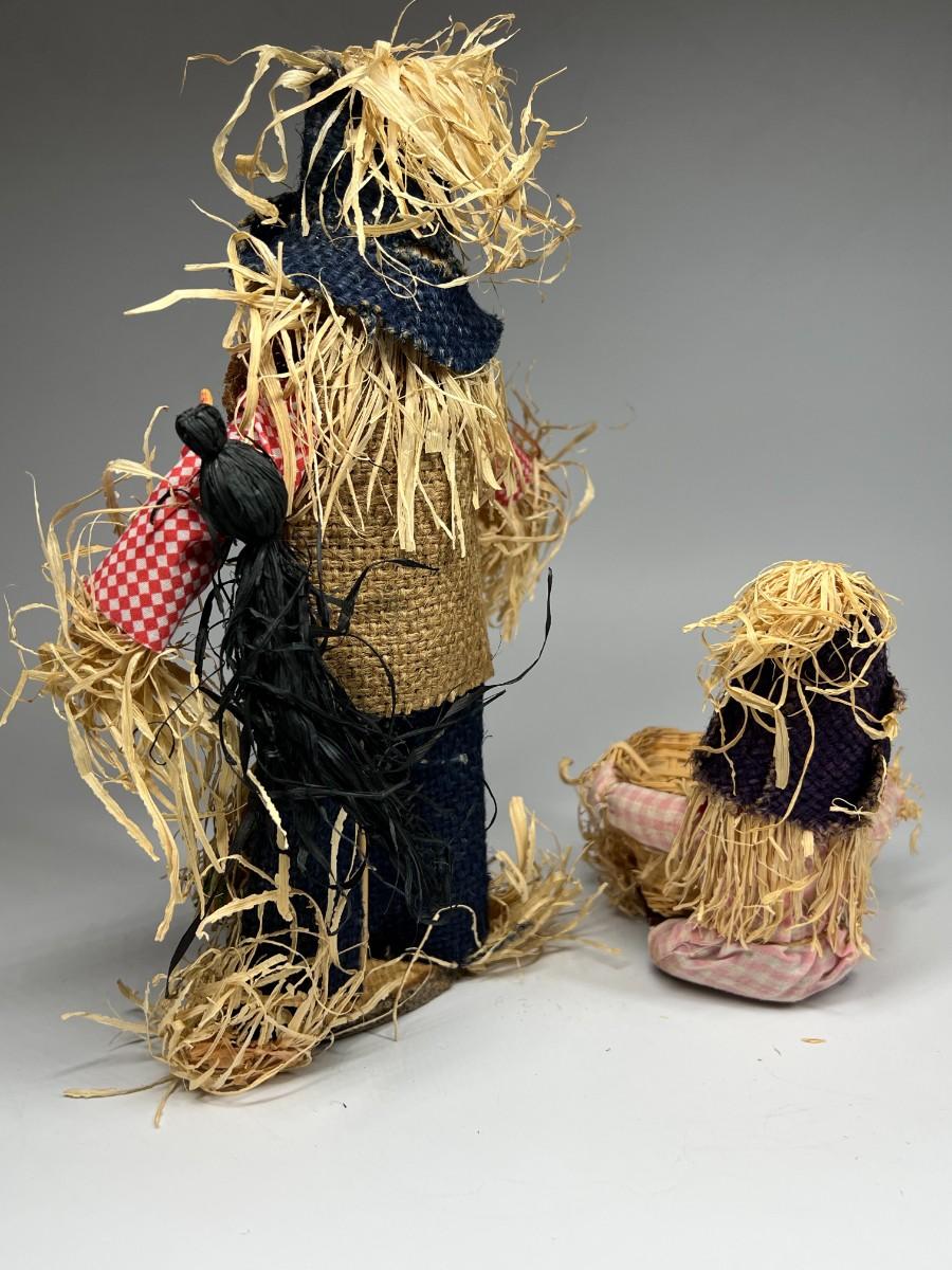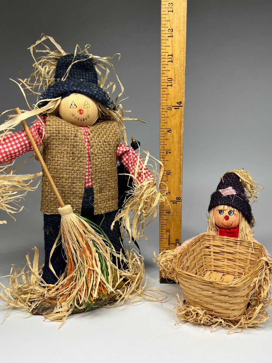 Pair of Scarecrow Weaved Hay Autumn Fall Rustic Decor
