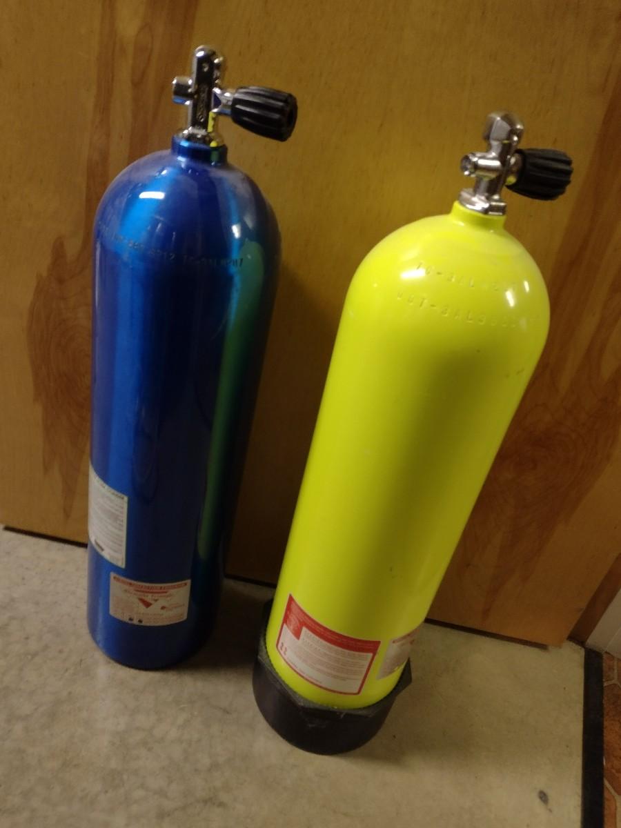 Pair of Scuba Gas Tanks Luxfor and Catalina with Valves. Tanks have not been inspected and may contain stored air.