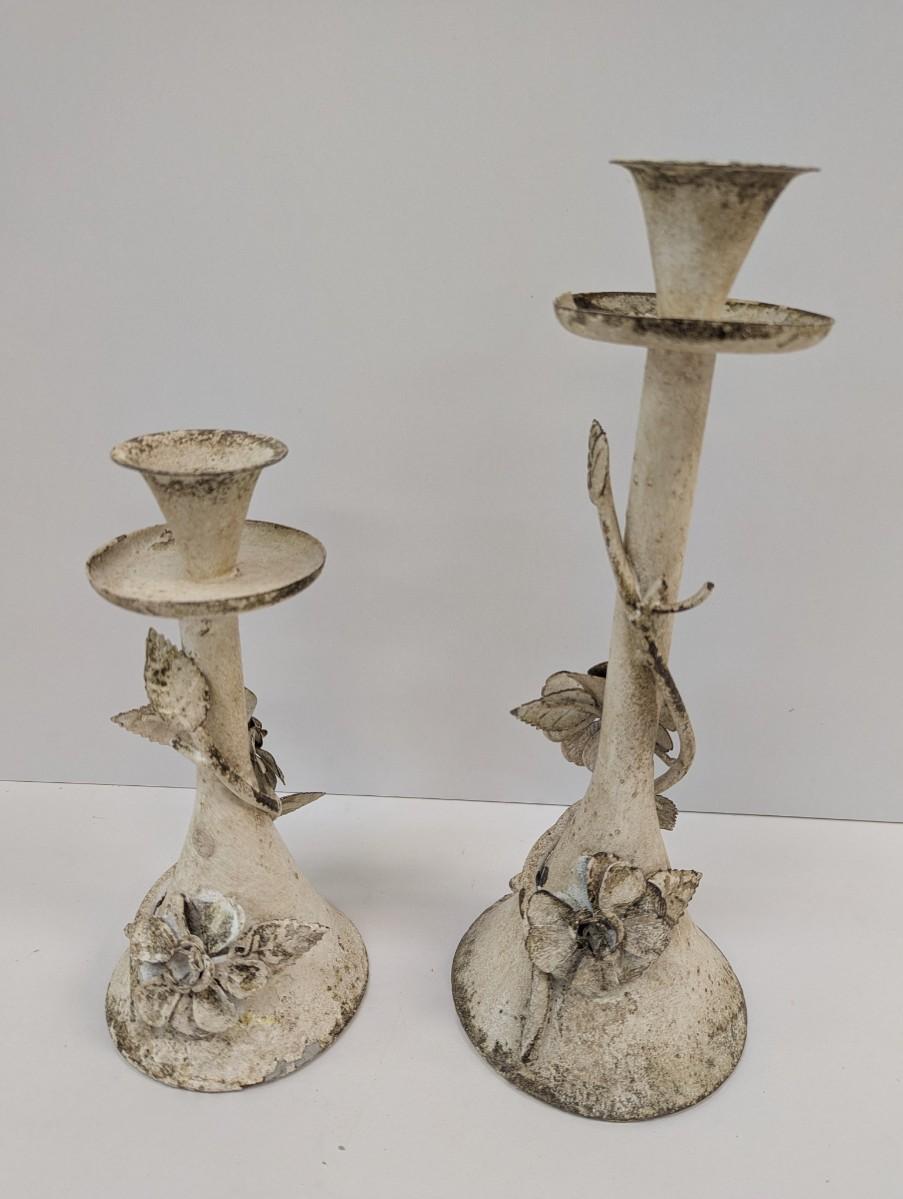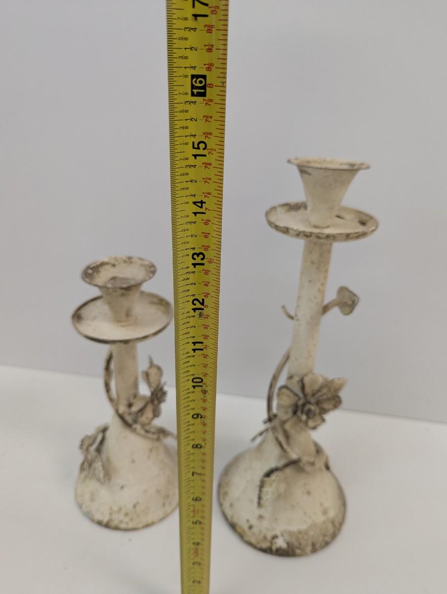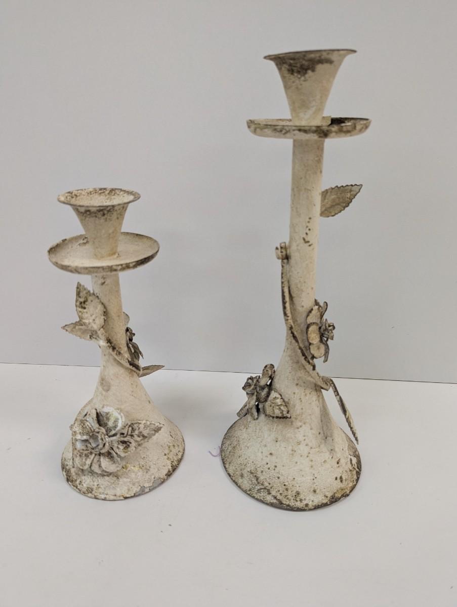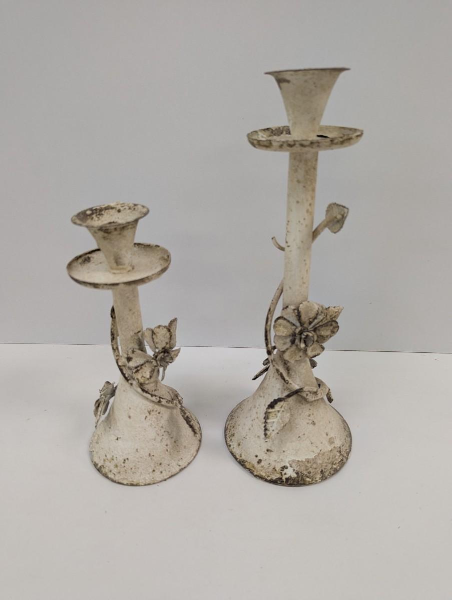 Pair Of Shabby Chic Vintage Cottage Chippy Paint Metal Candlesitck Holders