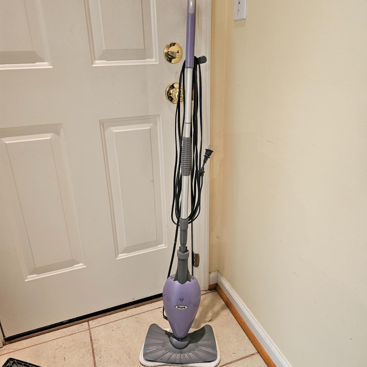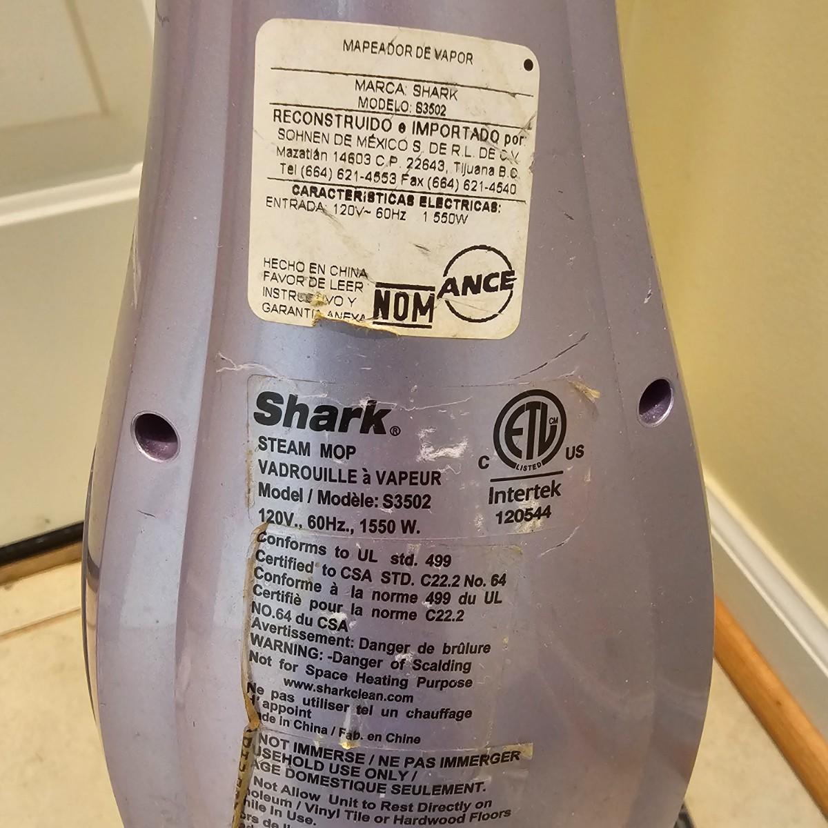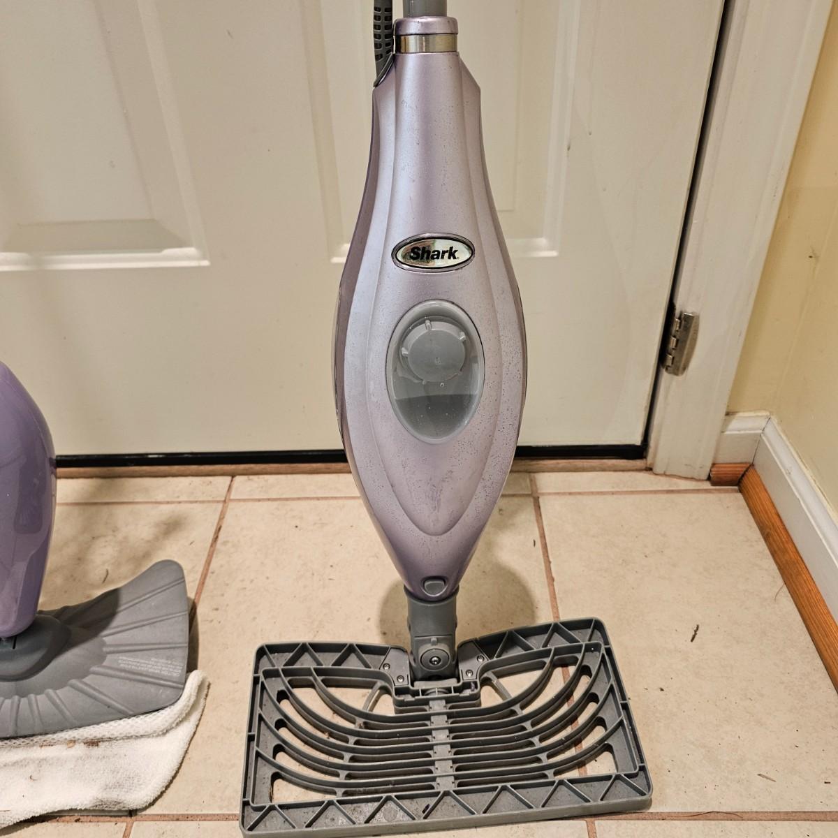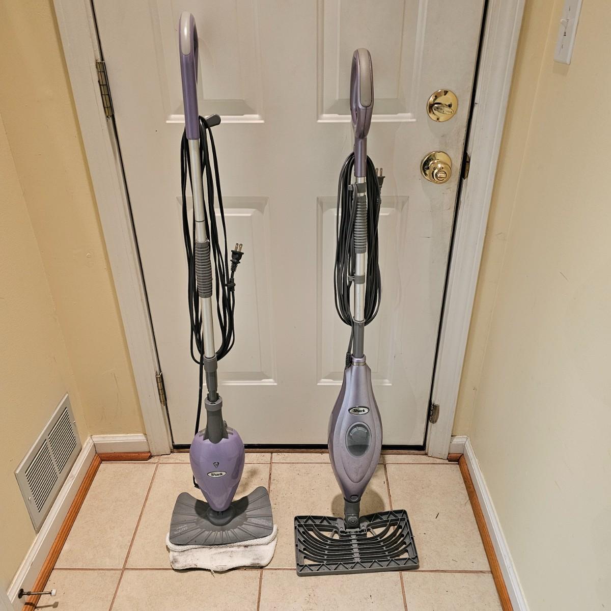 Two Shark brand steam mops for floor care. Both models take replaceable pads, and powered on when plugged in. Each approximately 12" x 46"H. See photos for details. Local pickup only.