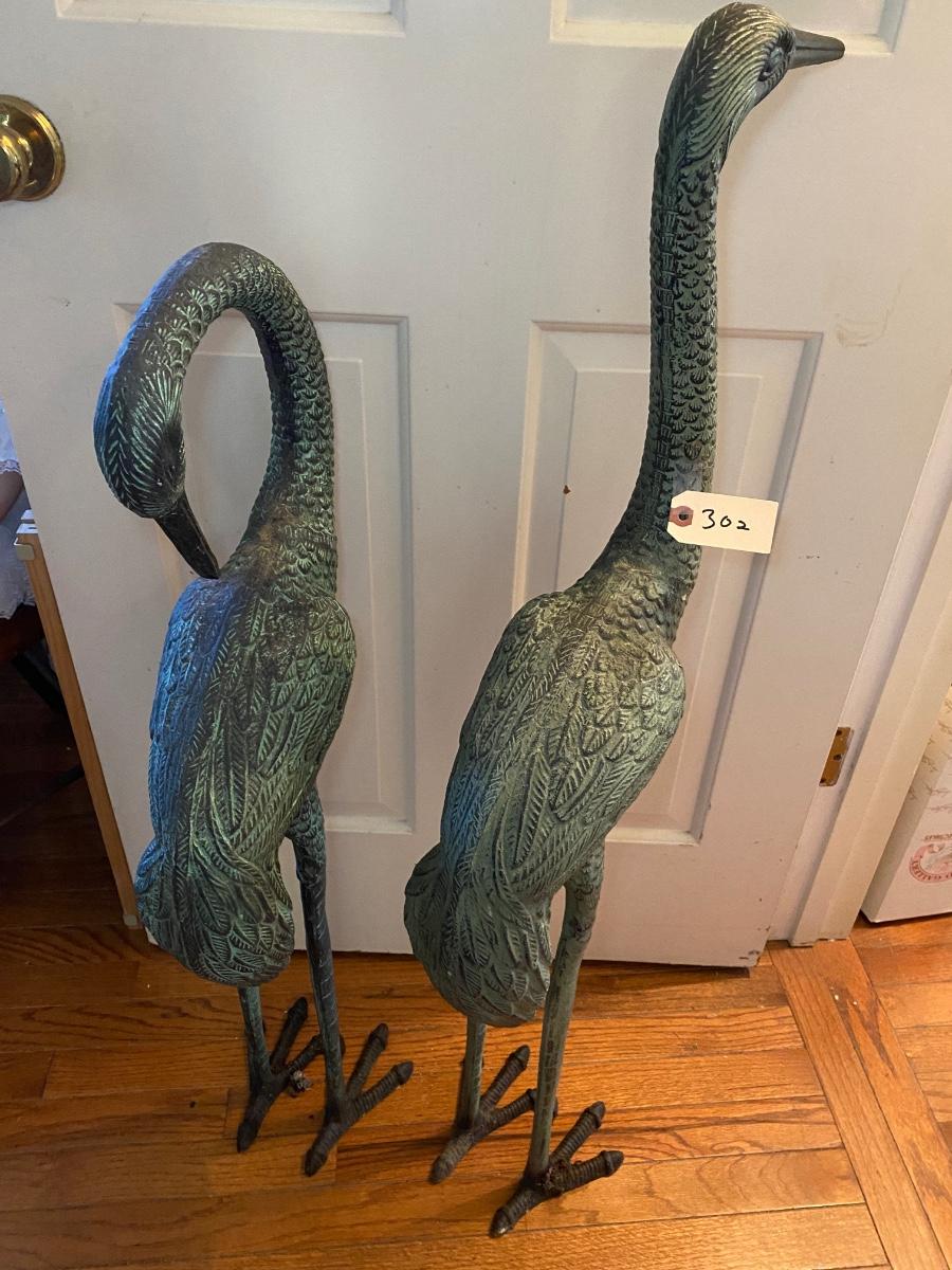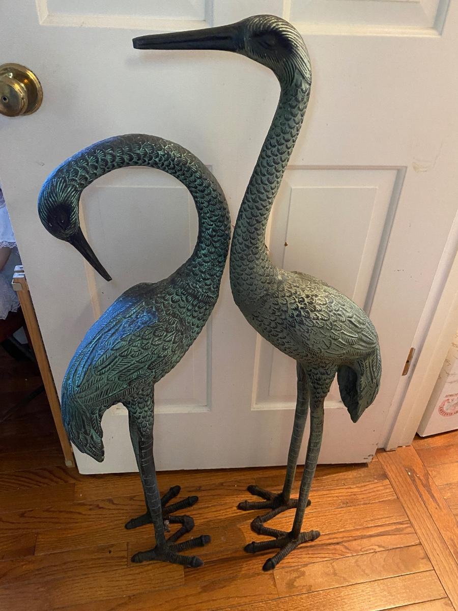 Pair of Shore Bird Metal Statue, pretty green patina as pictured