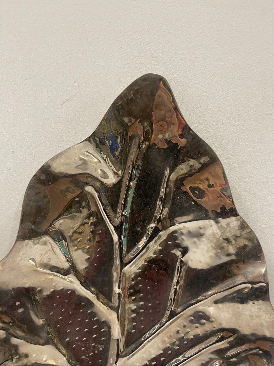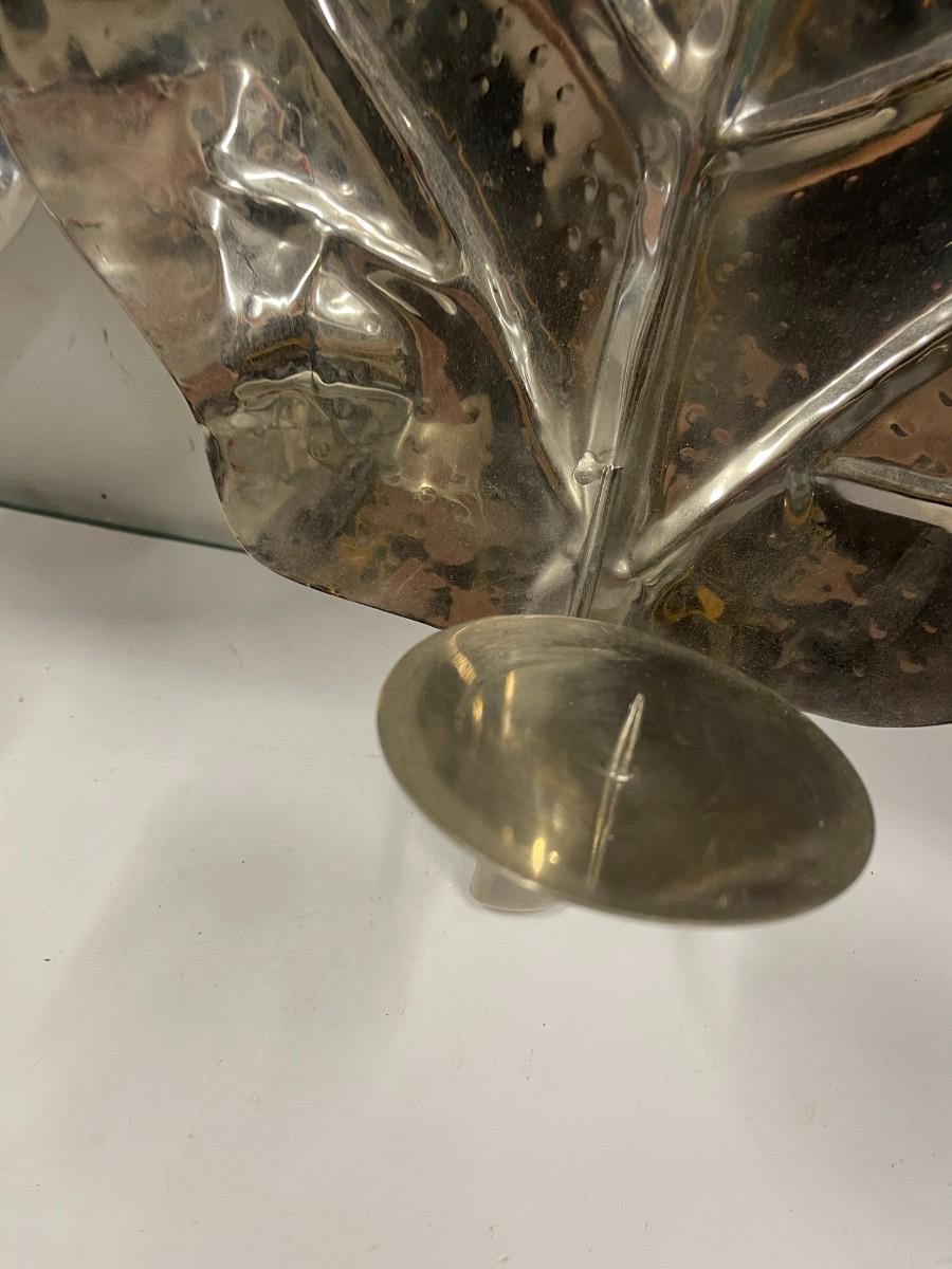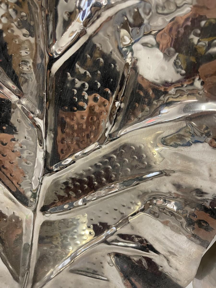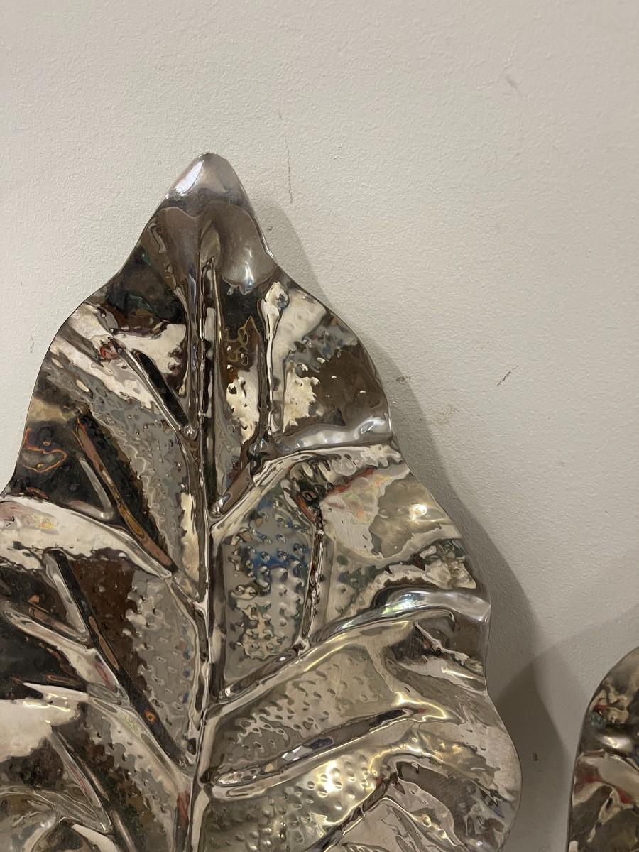 Pair of Silver Colored Hammered Metal Leaf Shaped Wall Sconces. 21 1/2" high x 12" wide.