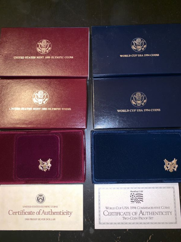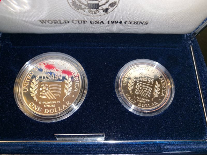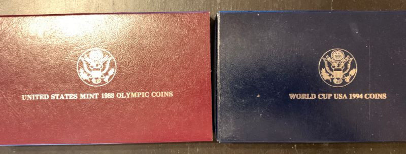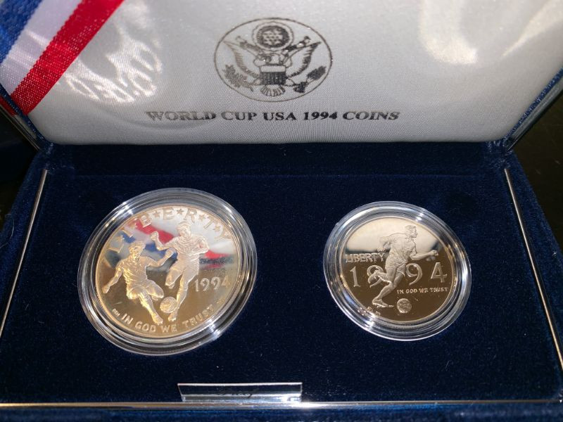 Pair of Silver Dollar Coin collectibles - 1988 Olympics and 1994 World Cup!