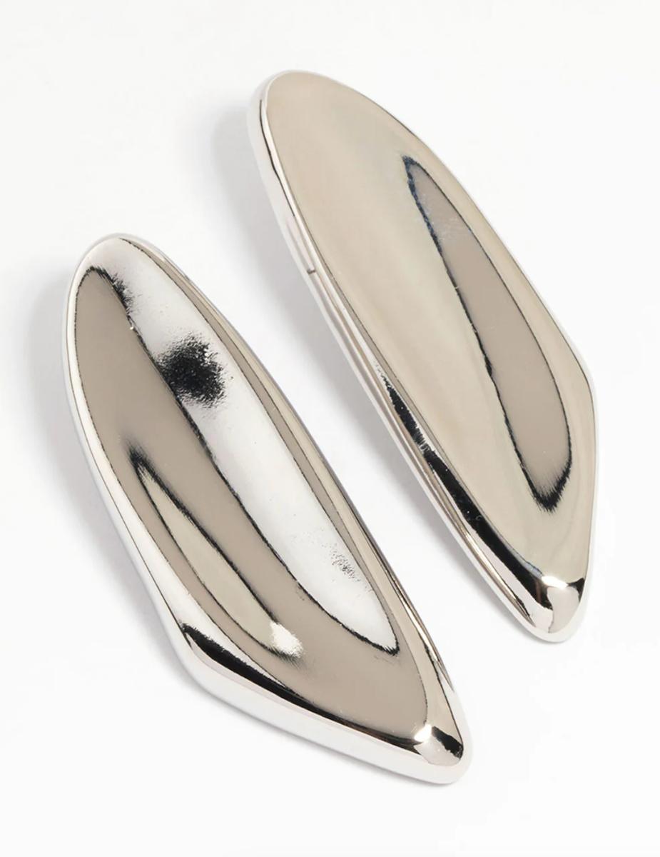 Pair of Silver Exaggerated Smooth Irregular Geometric Long Earrings for Women
