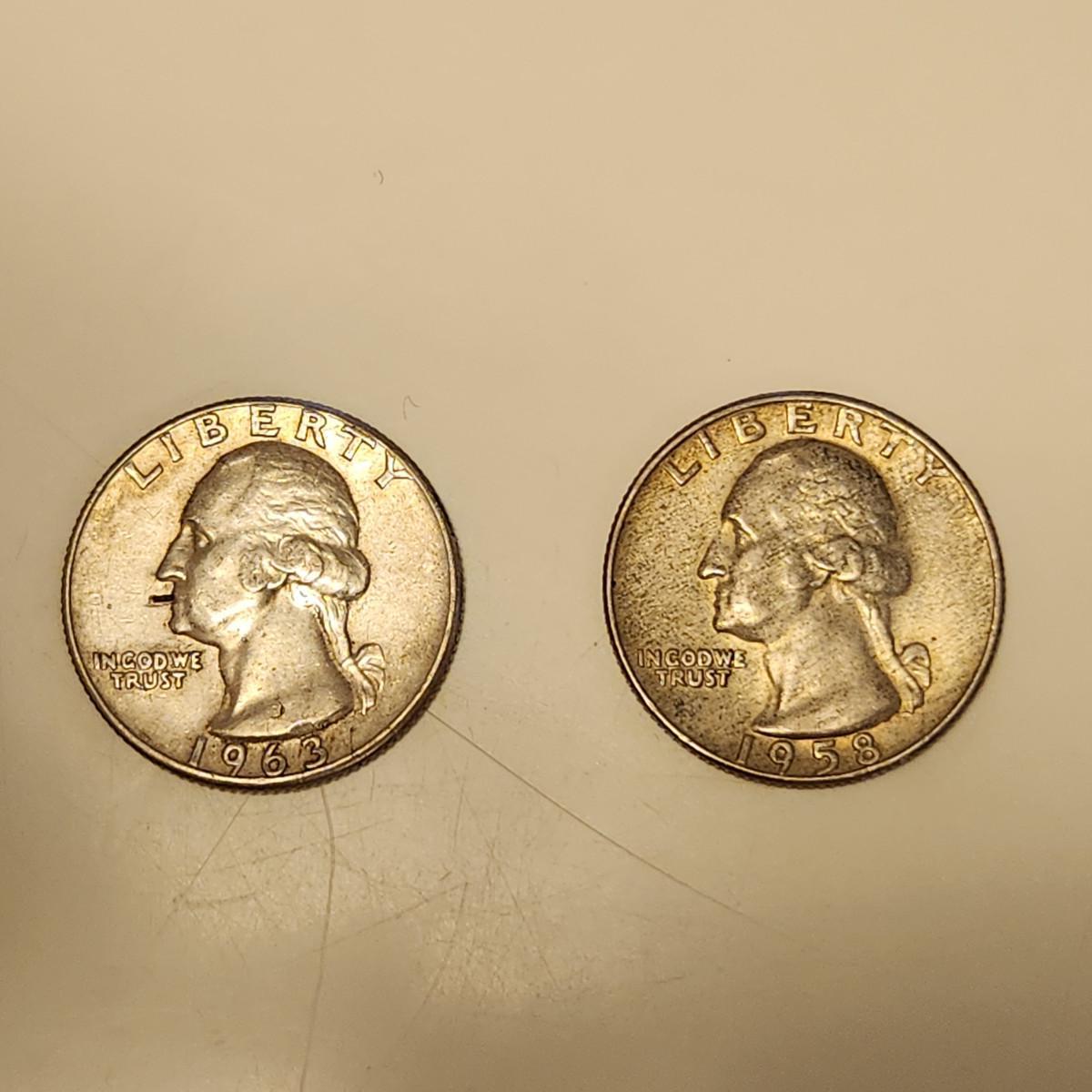 This auction lot is for a Pair of Silver Quarters. This offering is for a 1958 silver quarter and a 1963 silver quarter. This item is KY sales tax-exempt.