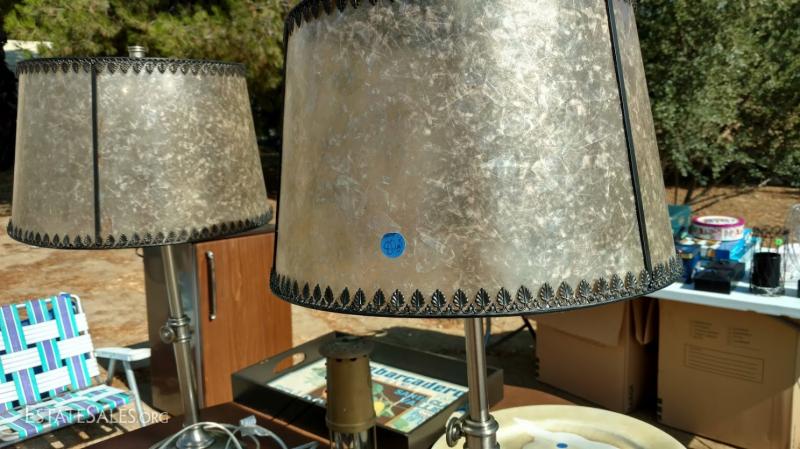 Pair of Silver Table Lamps w/Decorative Shades, High Quality