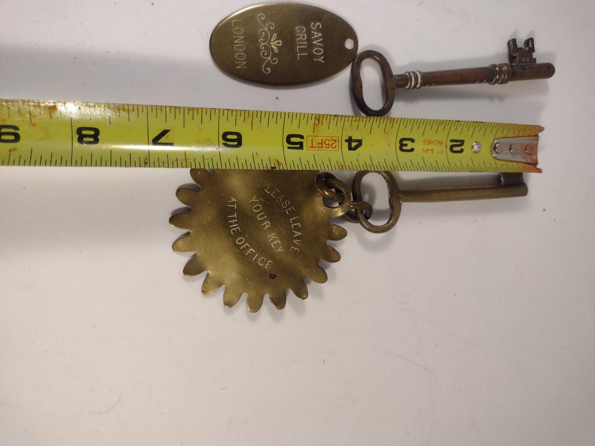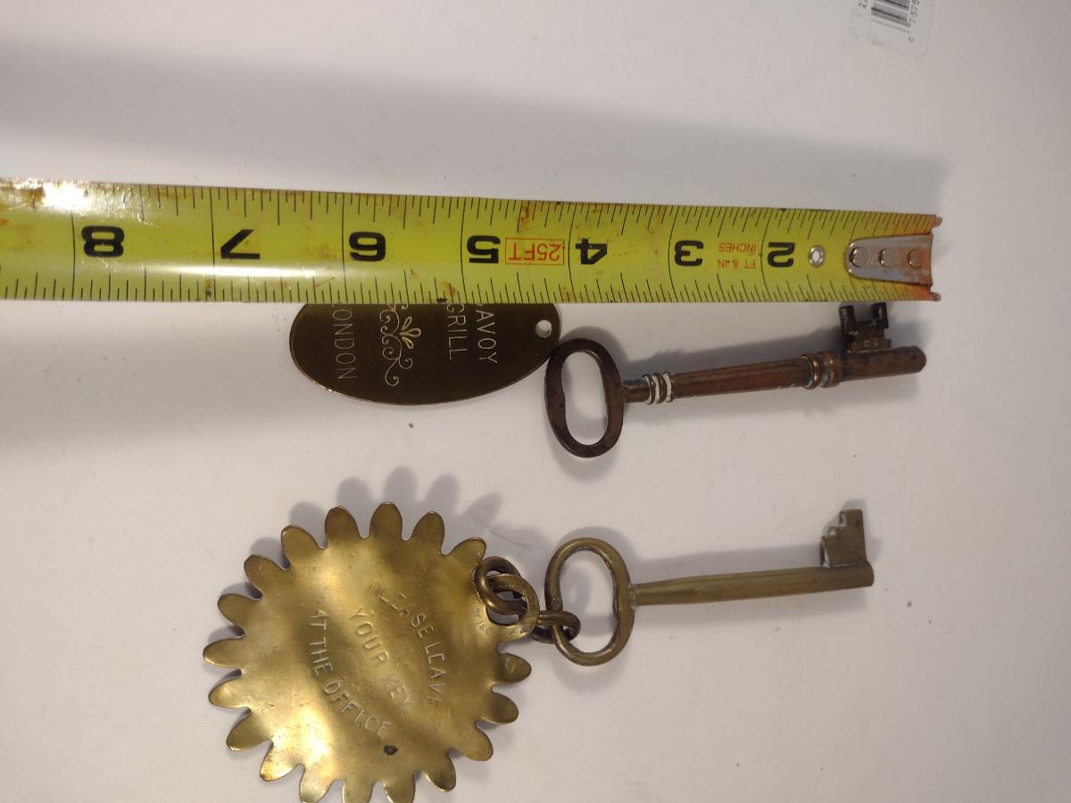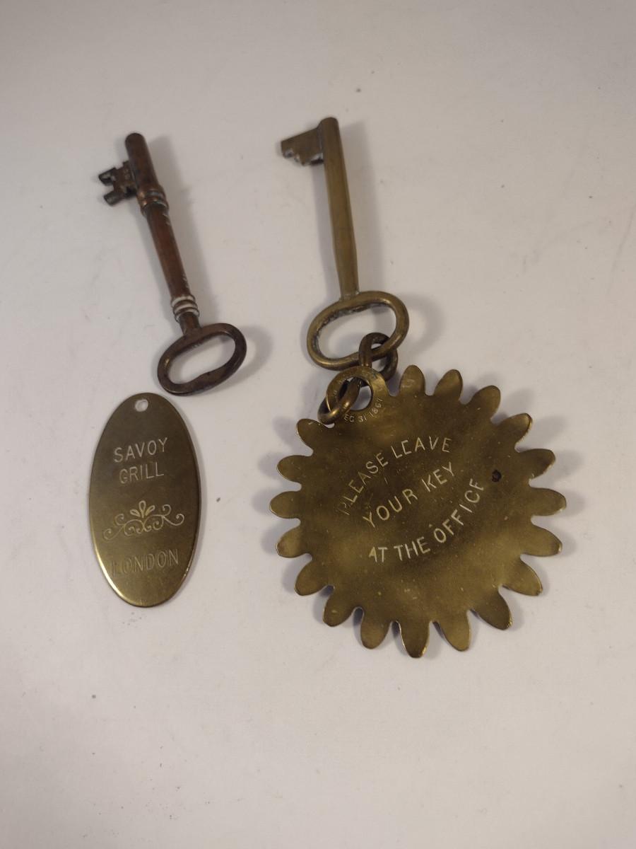 Pair of Skeleton Keys with Metal Key Tags- One is Savoy Grill of London
