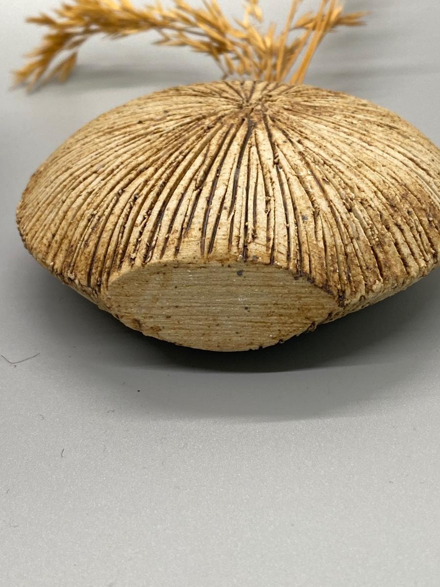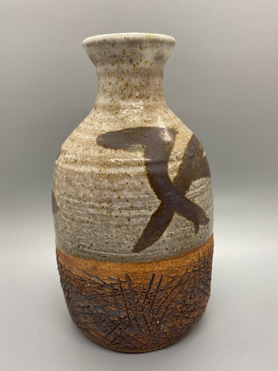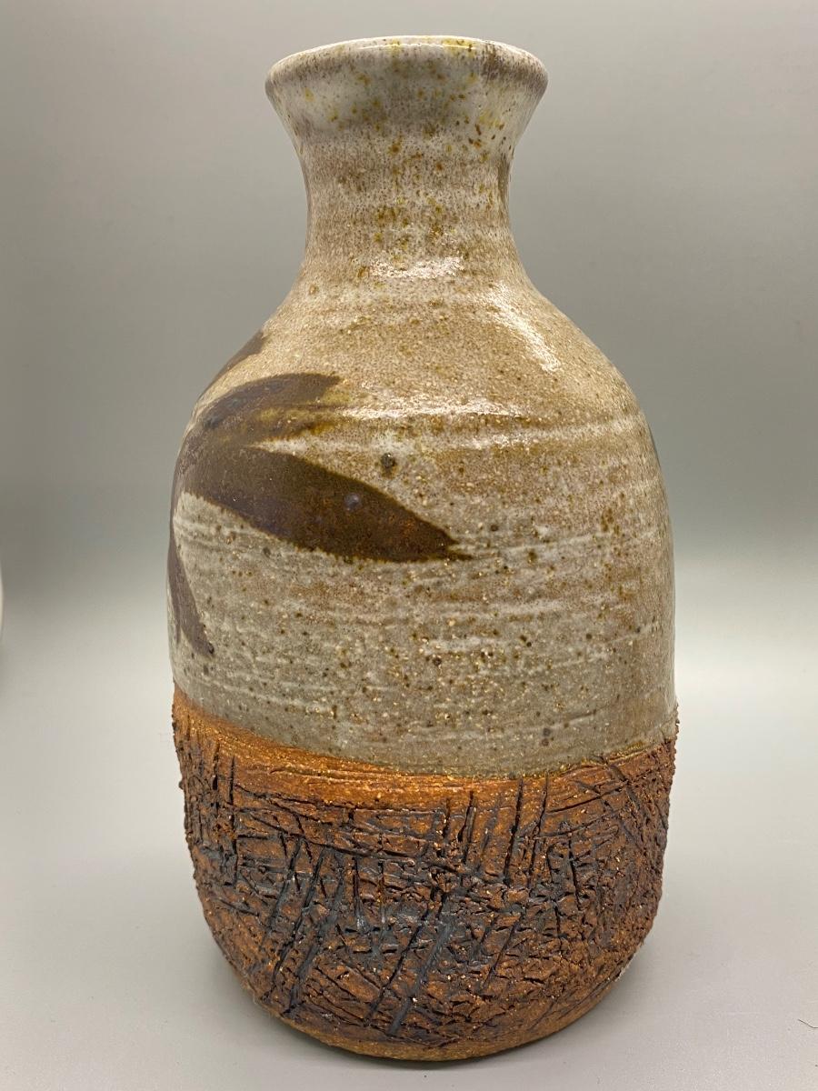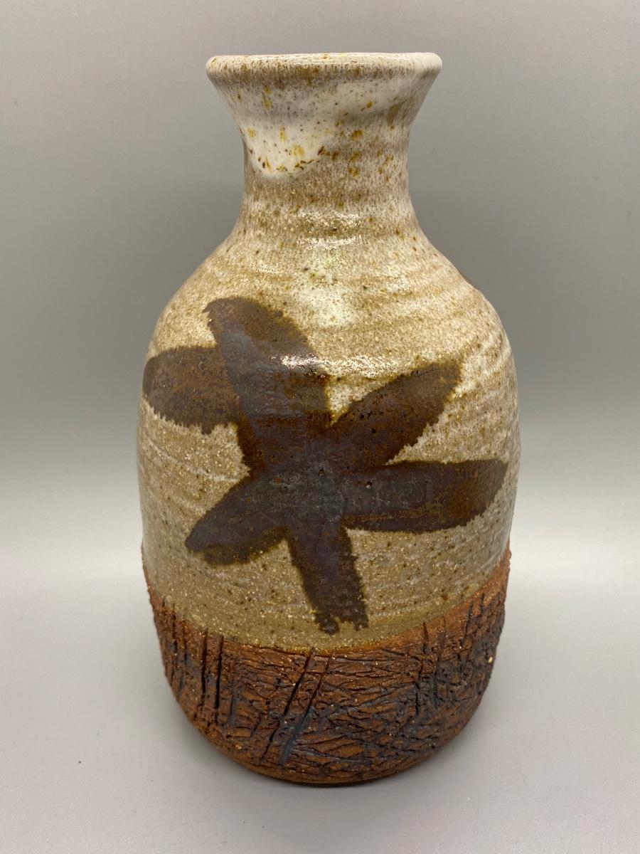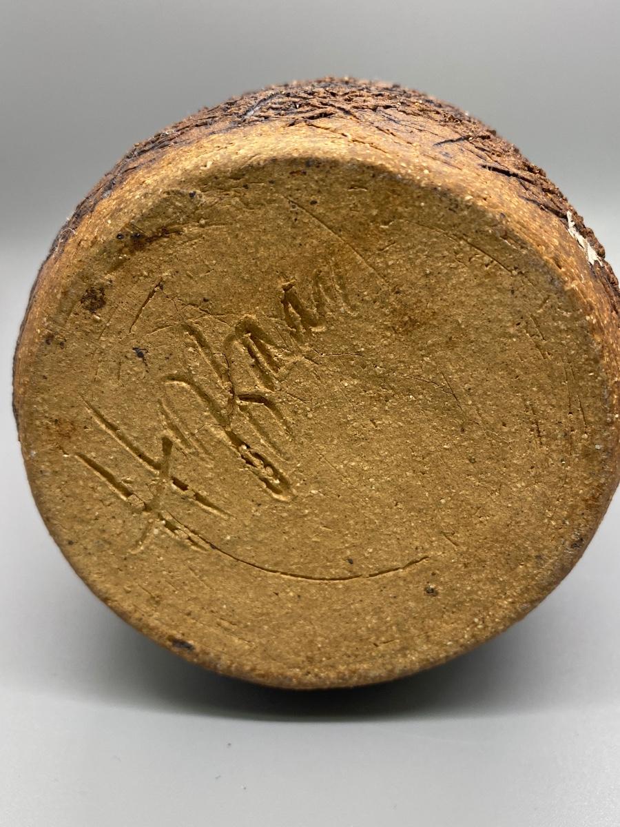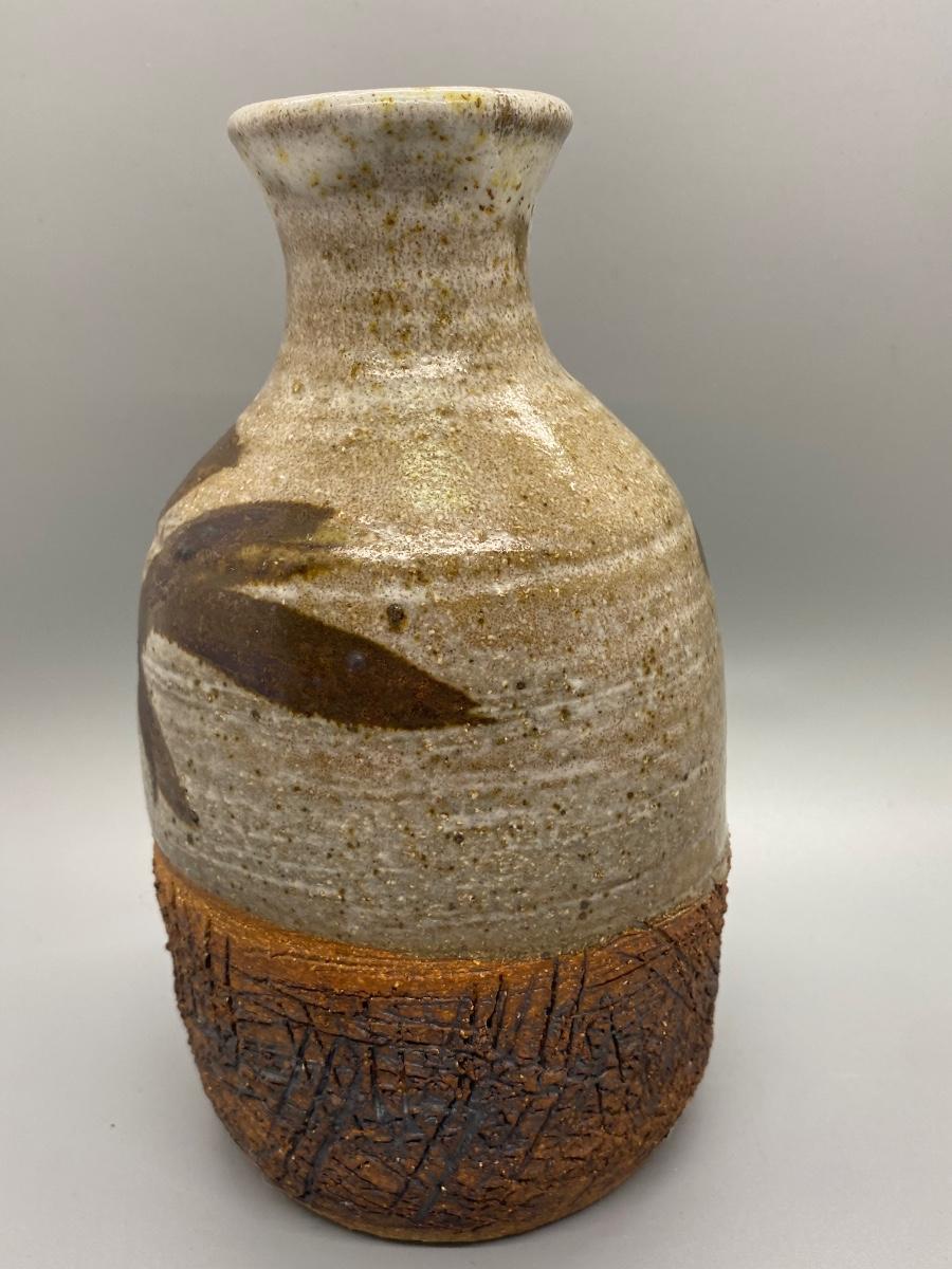 Pair of Small Brown MCM Abstract Home Decor Clay Pottery Vase Vessel & Faux Plant