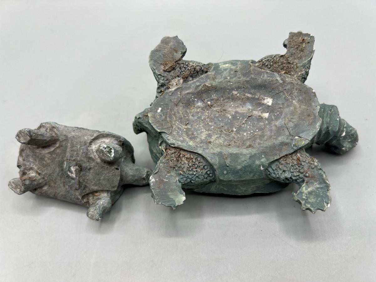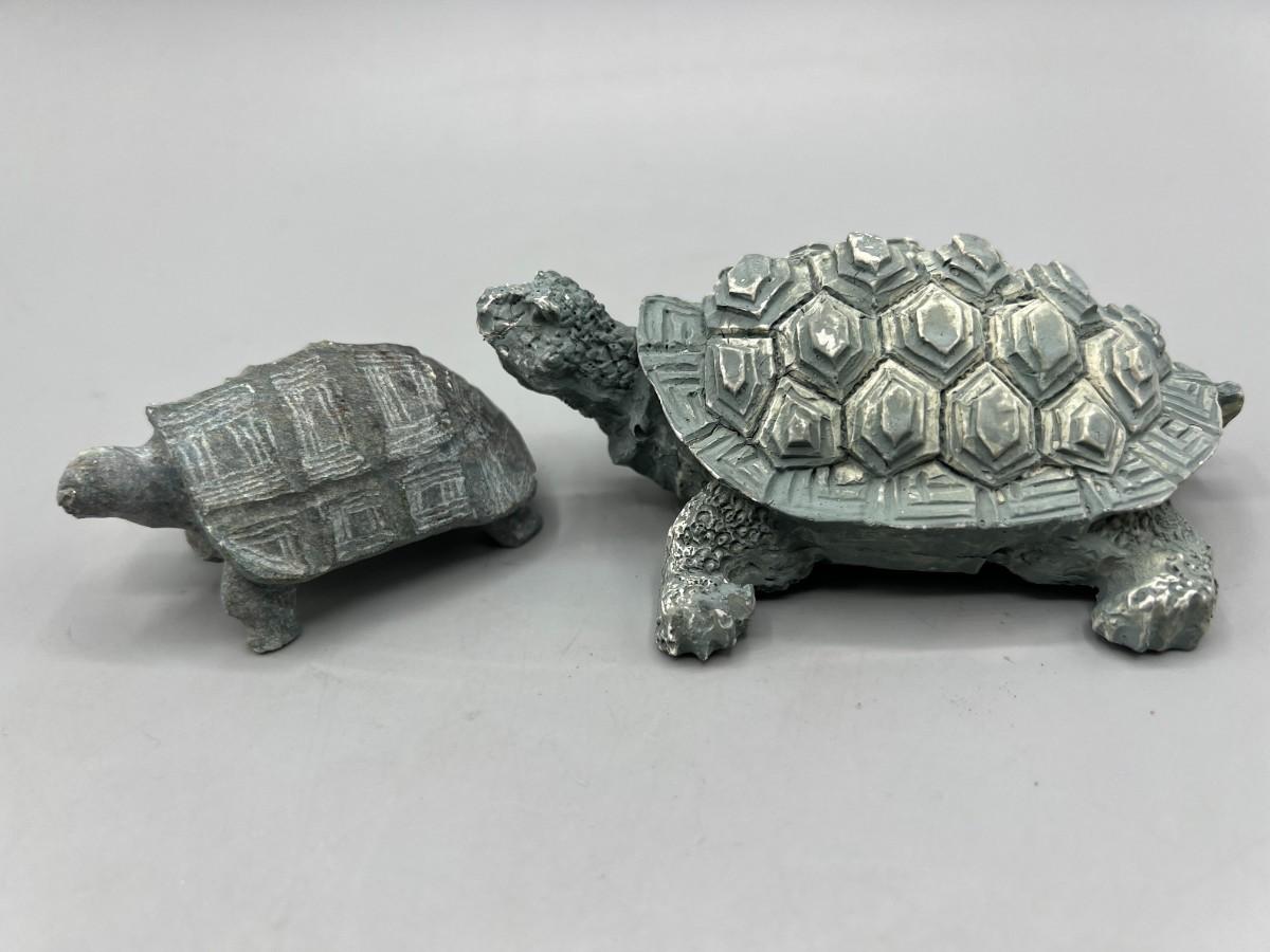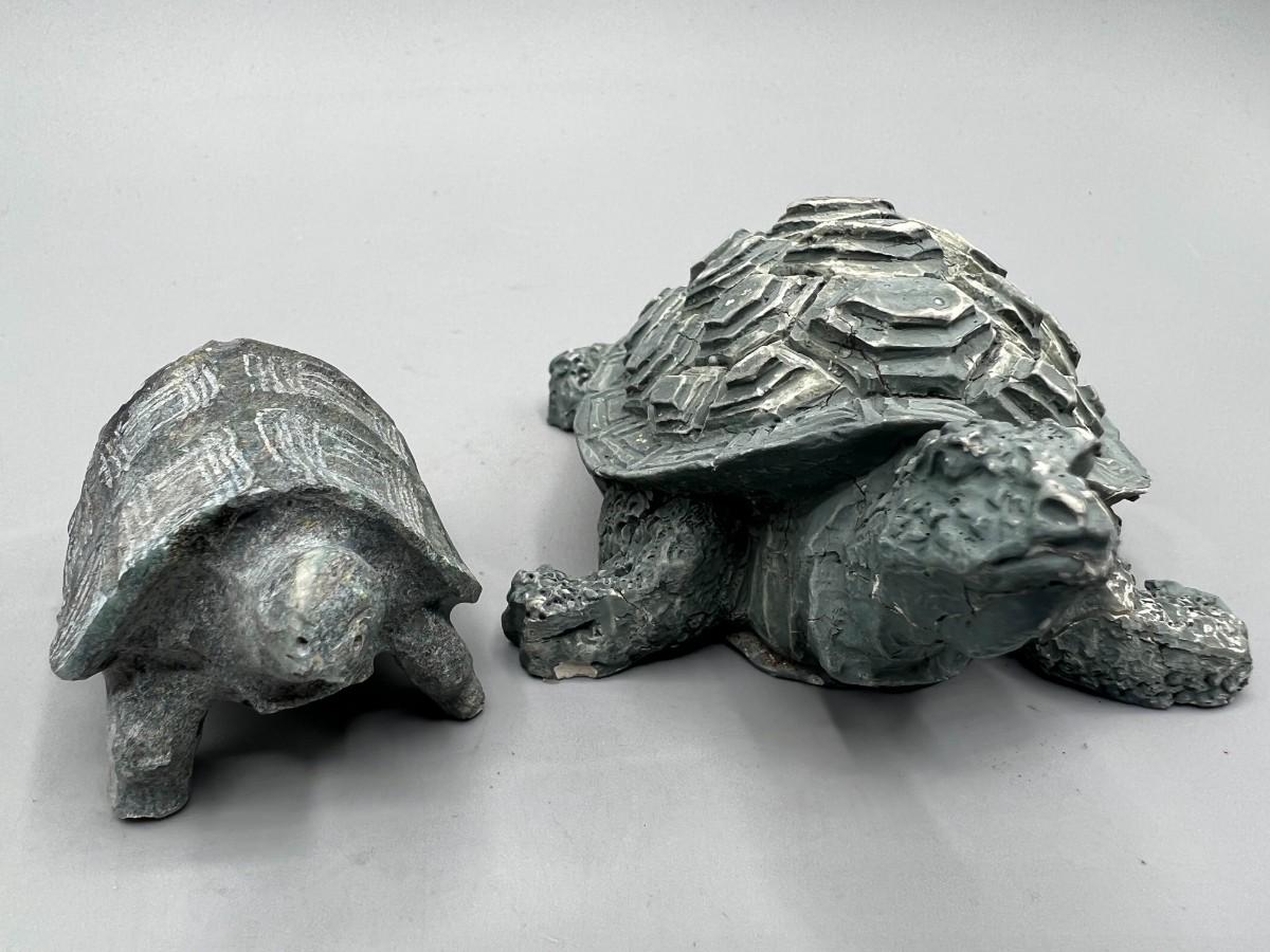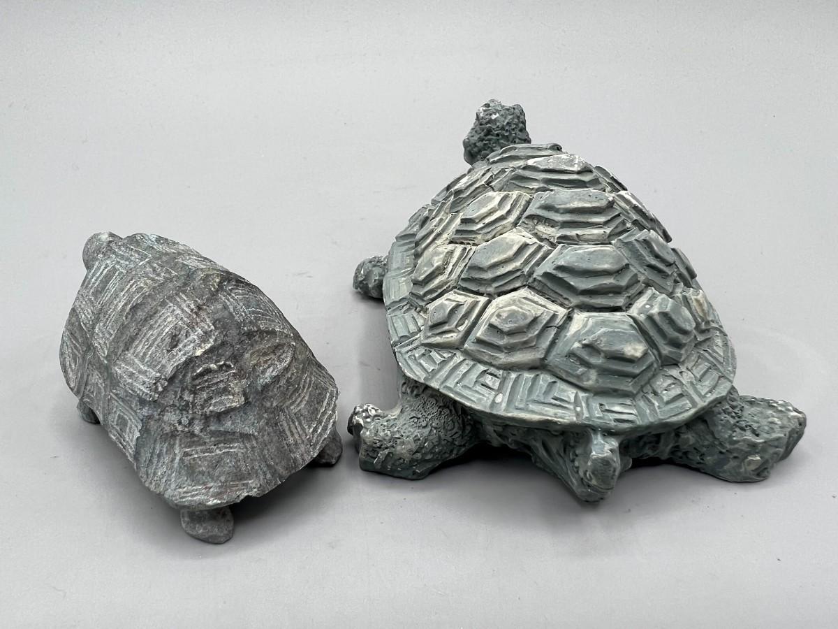 Pair of Small Clay Stone Resin Tortoise Figurines