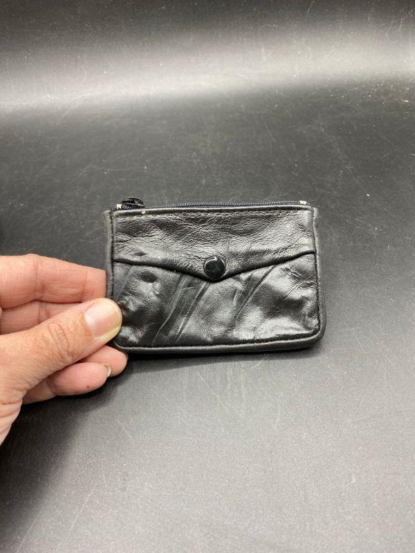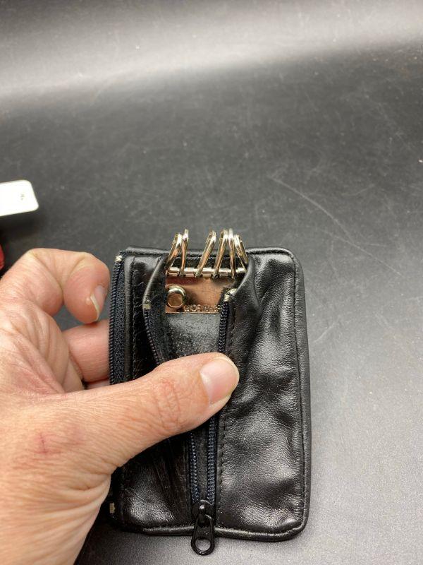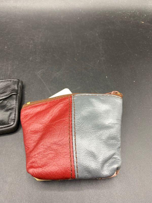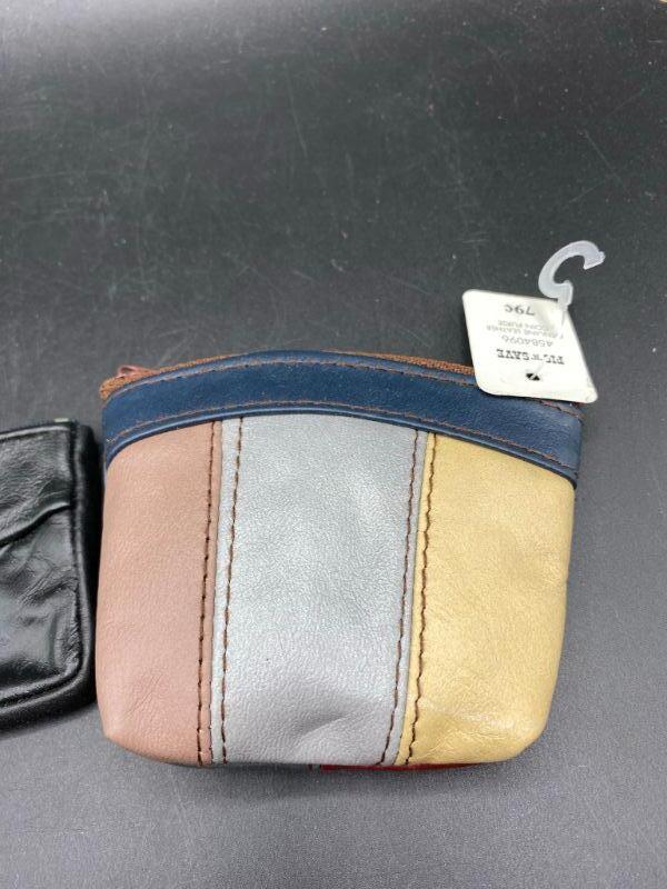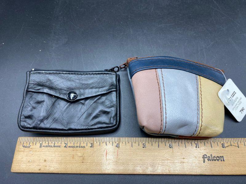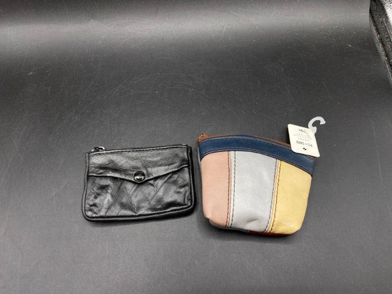 Pair of small coin purses. One still with tags. The black one has multiple pockets and hooks to hold keys.
